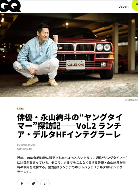GQJapan(ジーキュージャパン) 俳優・永山絢斗の“ヤングタイマー” 探訪記──Vol.2ランチア・デルタHFインテグラーレ GQJapanにて弊社商品車・ランチアデルタが 永山絢斗さんと共演しております!! GQ JAPAN https://www.gqjapan.jp/ 俳優・永山絢斗の“ヤングタイマー”探訪記 https://www.gqjapan.jp/cars/article/20210604-kento-nagayama-lancia-delta-hf-integrale-vol2
