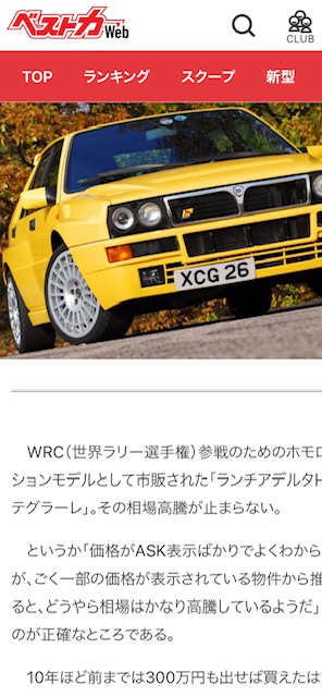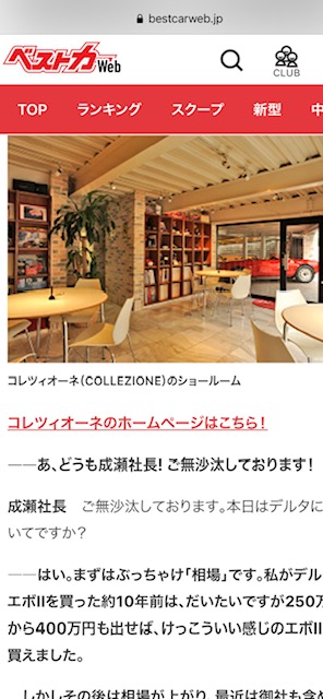 ベストカー!! カテゴリー : Pressroom 2021年4月29日 ベストカーWeb 元ランチアデルタオーナーの伊達軍曹より 取材を受けました。 ランチアデルタHFインテグラーレを特集していただき ありがとうございました!! 下記HPアドレスよりご覧ください。 WRCホモロゲマシン栄光のランチアデルタはなぜ異常高騰中なのか? https://bestcarweb.jp/usedcar/264921 ベストカーWeb https://bestcarweb.jp/
