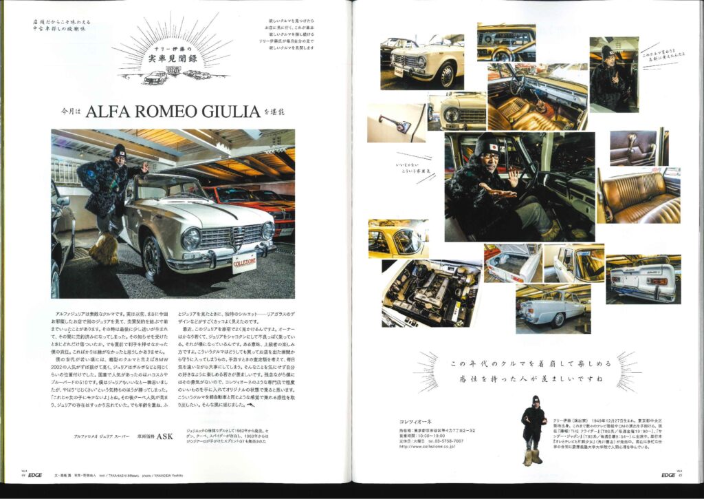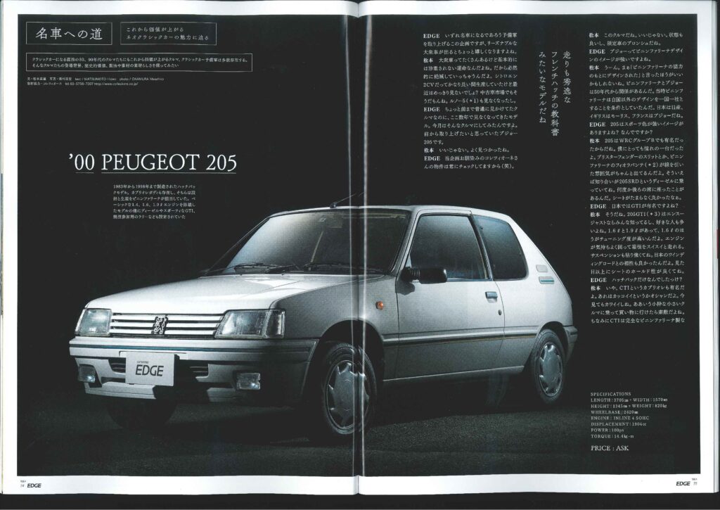 CarSensorEDGE!! カテゴリー : ニュース 2020年3月1日 44p~45p 74p~77p 「テリー伊藤の実車見聞録」のコーナーにて 弊社商品車・アルファロメオジュリアが 出演しております!! 「名車への道」のコーナーにて 弊社商品車・プジョー205が 出演しております!!