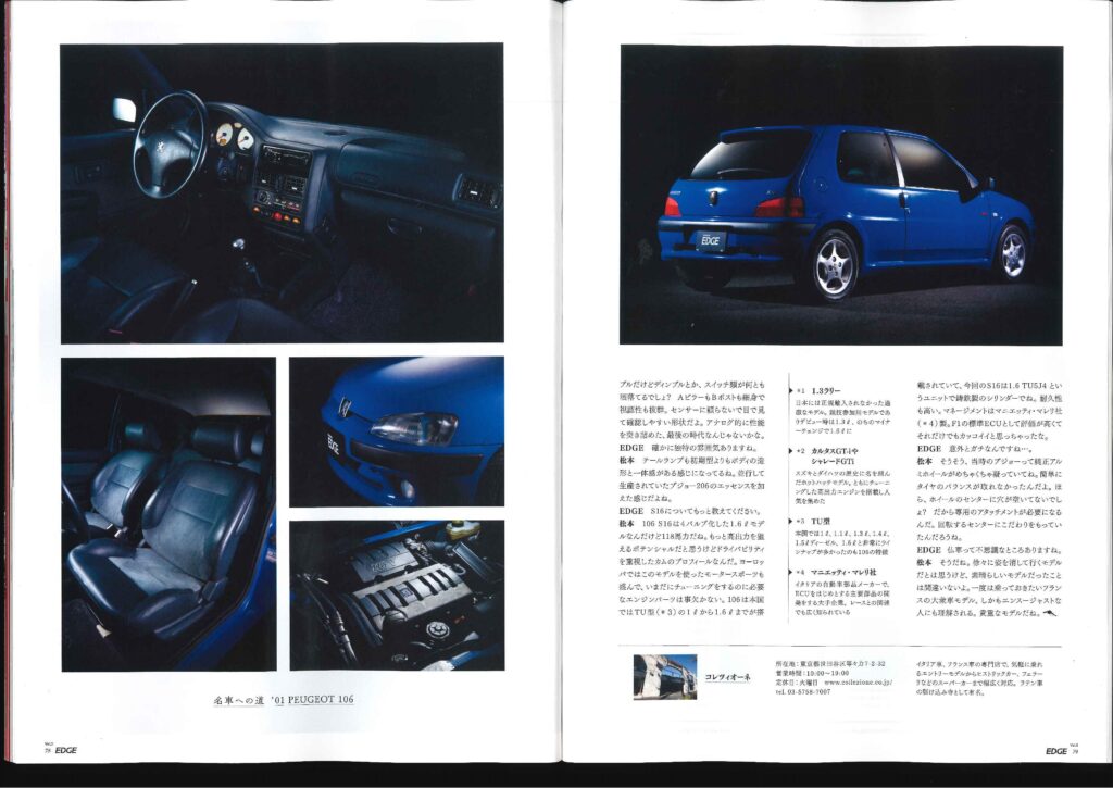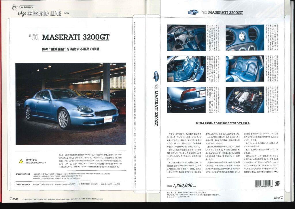 44p~45p 76p~79p MJブロンディ氏のエッジセカンドライン のコーナーにて 弊社商品車・マセラティ3200GTが 特集されました!! そして、「名車への道」のコーナーにて 弊社商品車・プジョー106が 出演しております!!