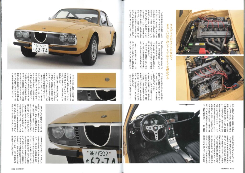 自動車趣味人!! カテゴリー : Pressroom 2019年2月1日 自動車趣味人 No.12 Winter 29p~37p 「クルマの肖像」のコーナーにて 弊社お客様のアルファロメオGT1300 ジュニアザガートが 9ページに渡り特集されております!!