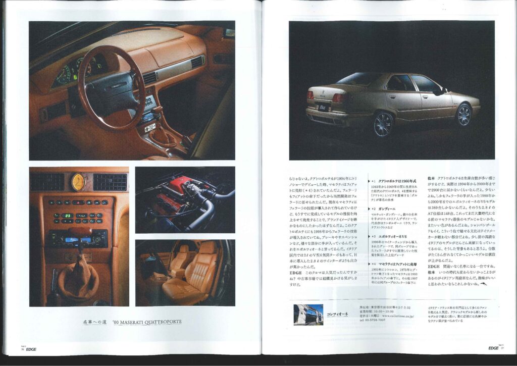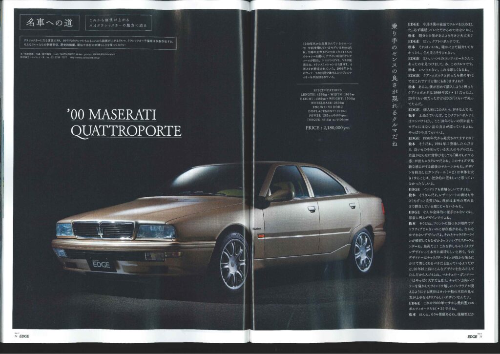 74p~77p 「名車への道」のコーナーにて 弊社商品車・マセラティクワトロポルテが 出演しております!!