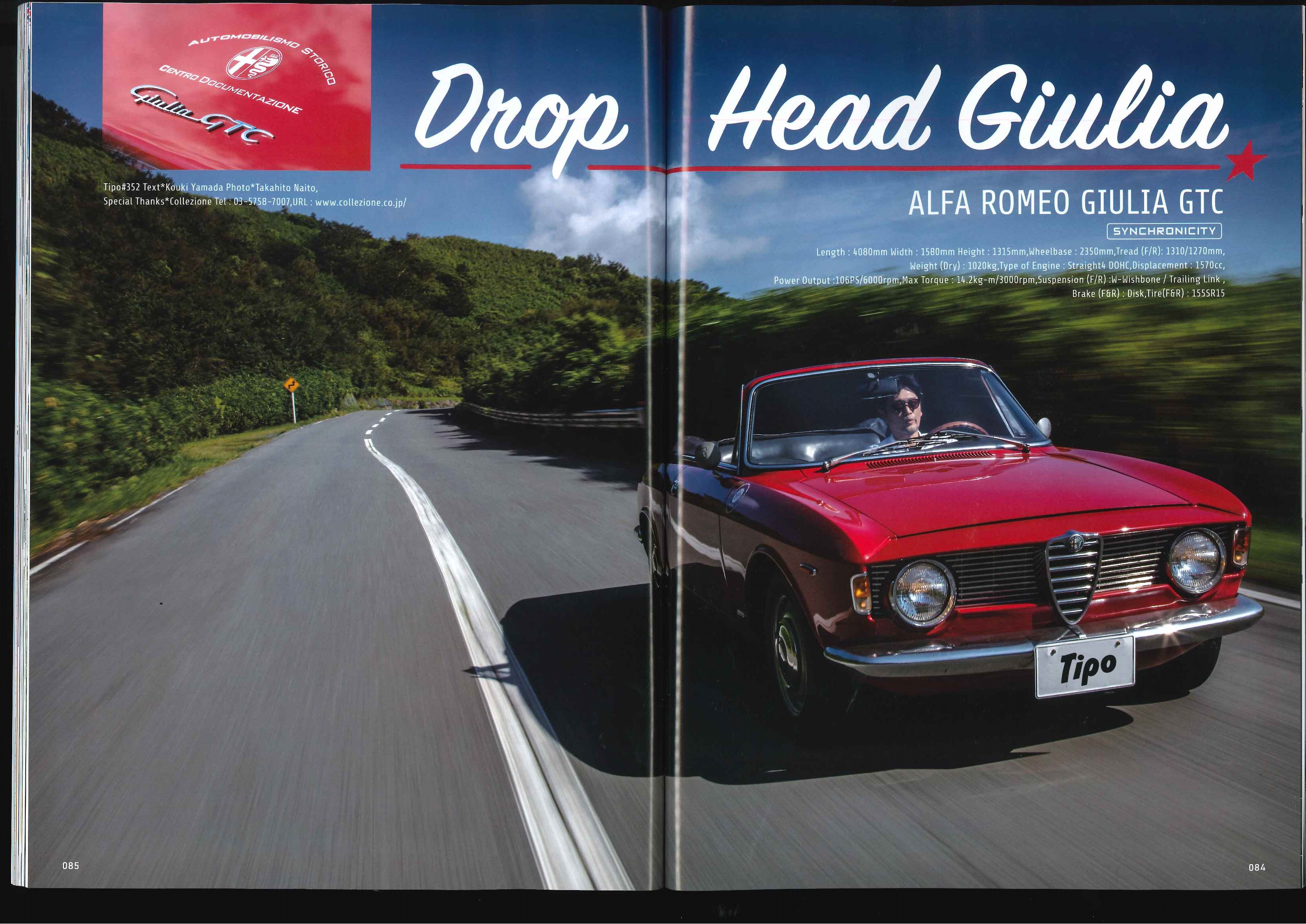 ティーポNo352 2018年10月号  84p~89p  Synchronicityのコーナーにて 弊社商品車・アルファロメオジュリアGTCが 6ページに渡り特集されました!!