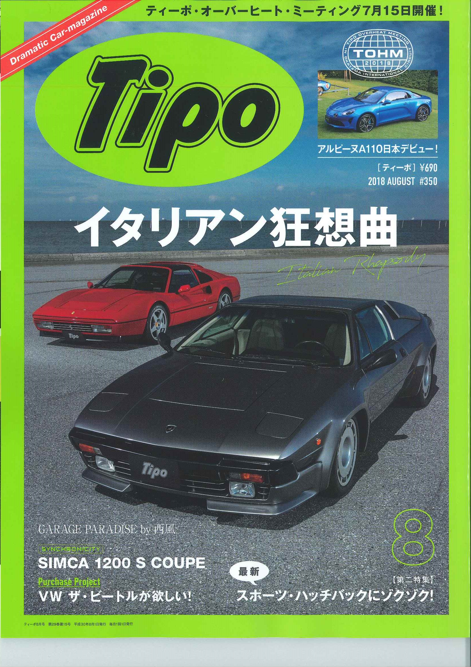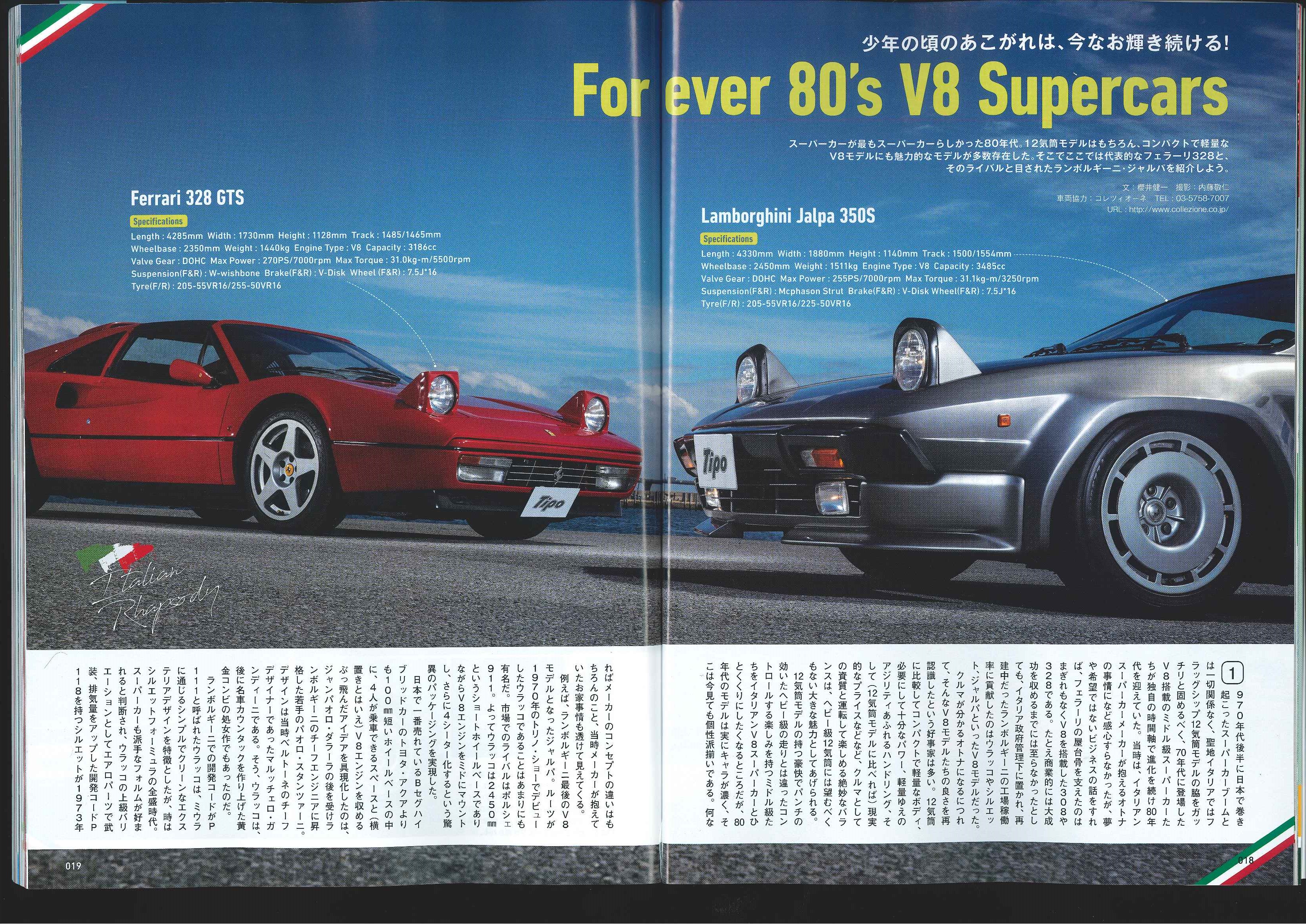 Tipo!! カテゴリー : Pressroom 2018年7月8日 ティーポNo350 2018年8月号 表紙 18p~23p 巻頭特集「イタリアン狂想曲」のコーナーにて 弊社商品車・ランボルギーニジャルパ、フェラーリ328が特集されました! No.347号に続き表紙にも出演しております!! 弊社のお客様&愛機も多数出演しております!!!