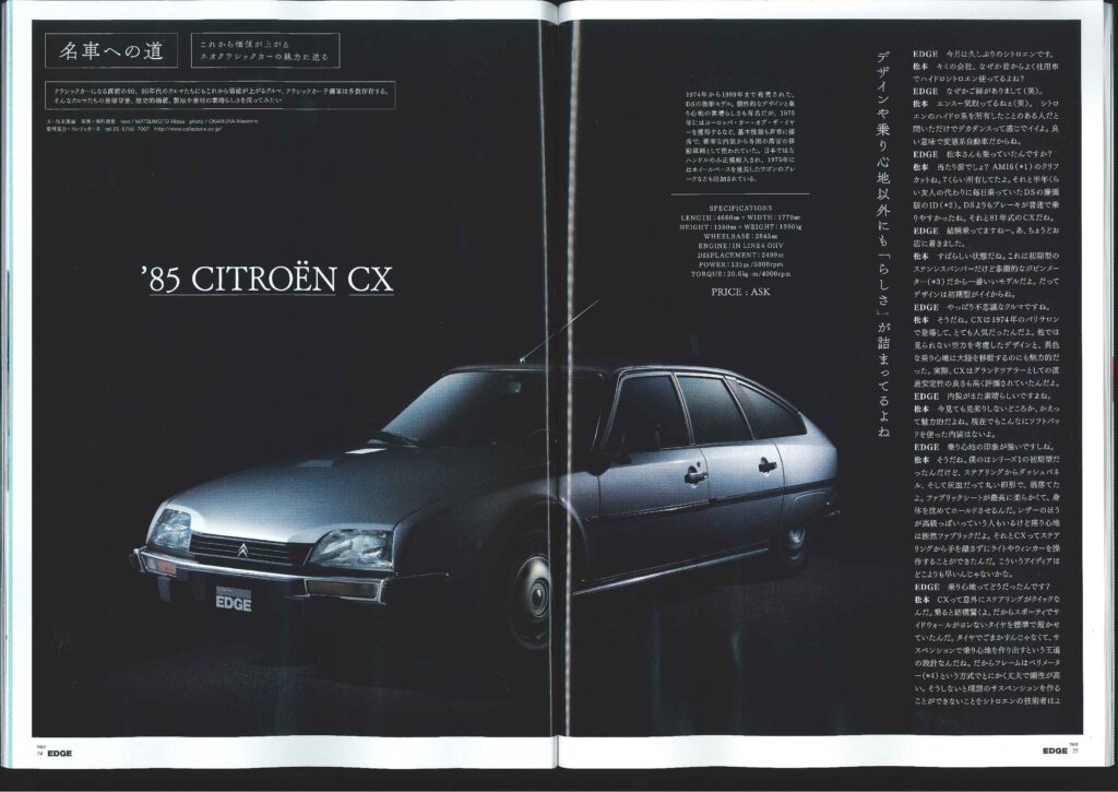 74p~77p 「名車への道」のコーナーにて 弊社商品車・シトロエン CXが 出演しております!!
