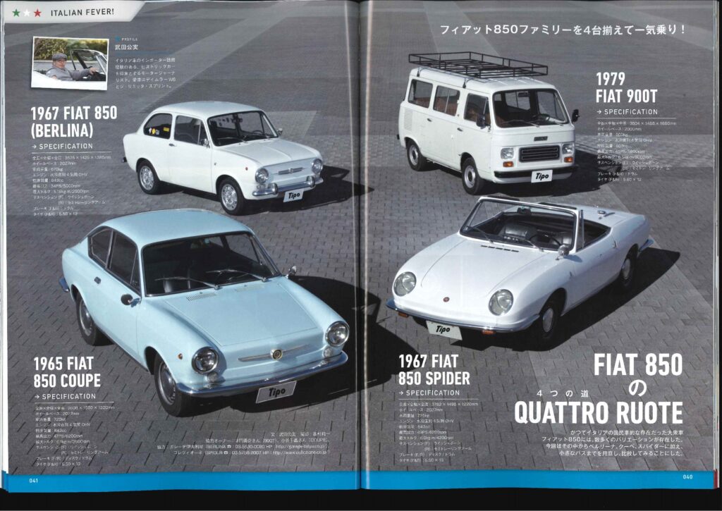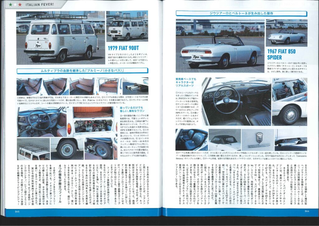 40p~47p ITALIANFEVER! 弾けるイタリアン!のコーナーにて 弊社商品車・フィアット850スパイダーが 出演おります!