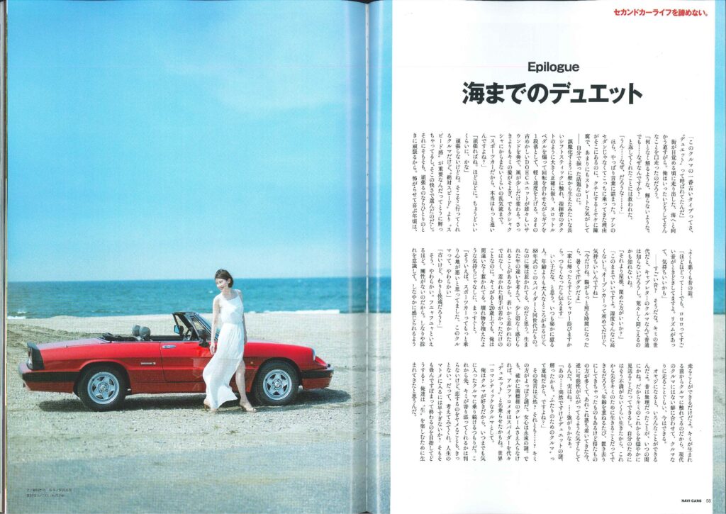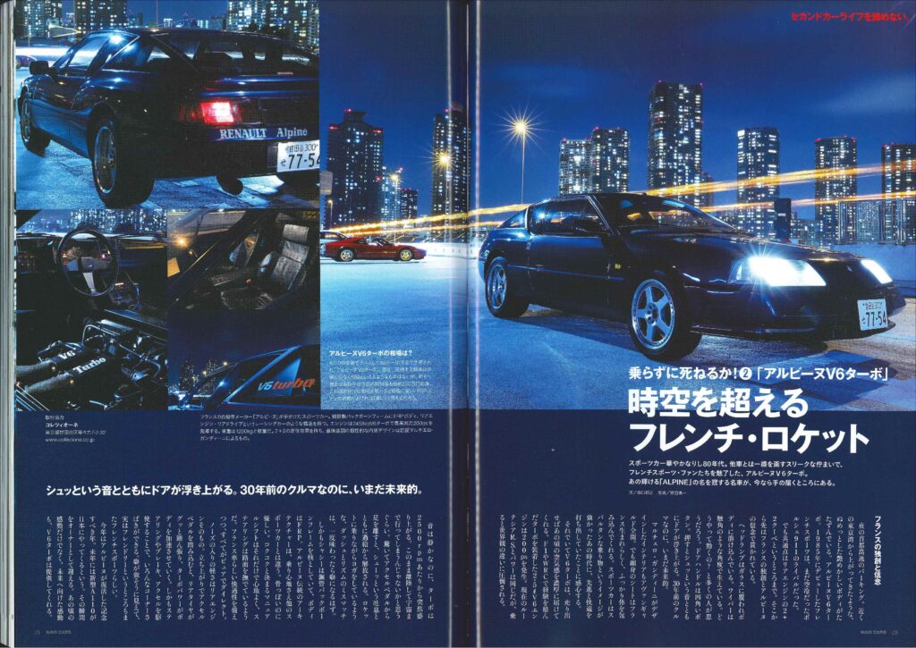 NAVICARS!! カテゴリー : ニュース 2017年8月1日 表紙 22p~23p 28p~29p 58p~59p セカンドカーライフを諦めない。 のコーナーにて 弊社商品車・アルファロメオスパイダーと アルピーヌV6ターボが出演しております!!