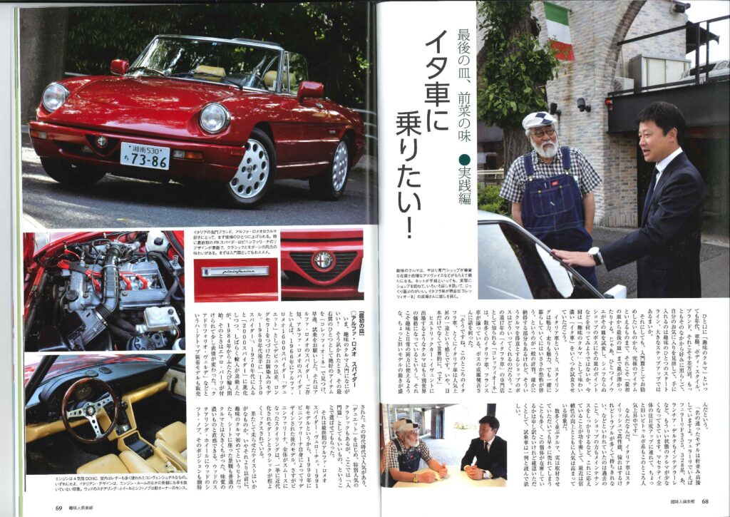 趣味人倶楽部!! カテゴリー : ニュース 2016年7月1日 68p~70p 趣味人倶楽部「イタ車に乗りたい!」実践編 にて取材を受けました! 弊社商品車・アルファロメオスパイダーヴェローチェも 出演しております!!