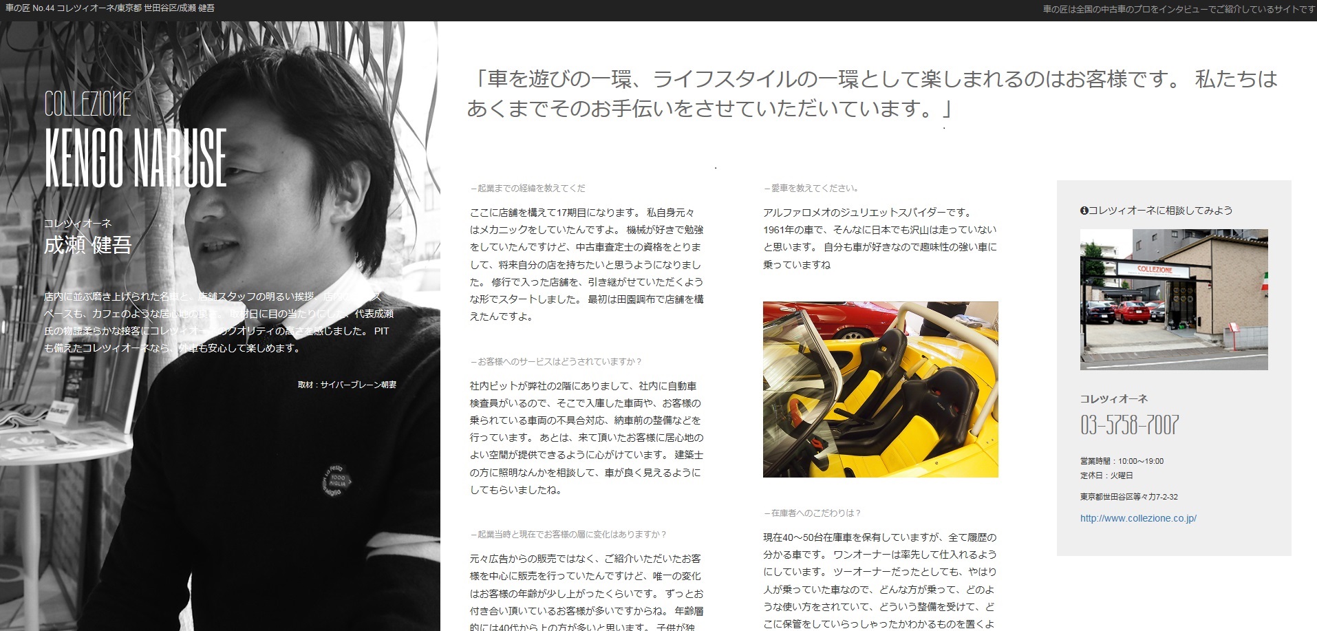 「車の匠」にて取材を受けました! 下記アドレスよりご覧ください。 http://cars-takumi.net/