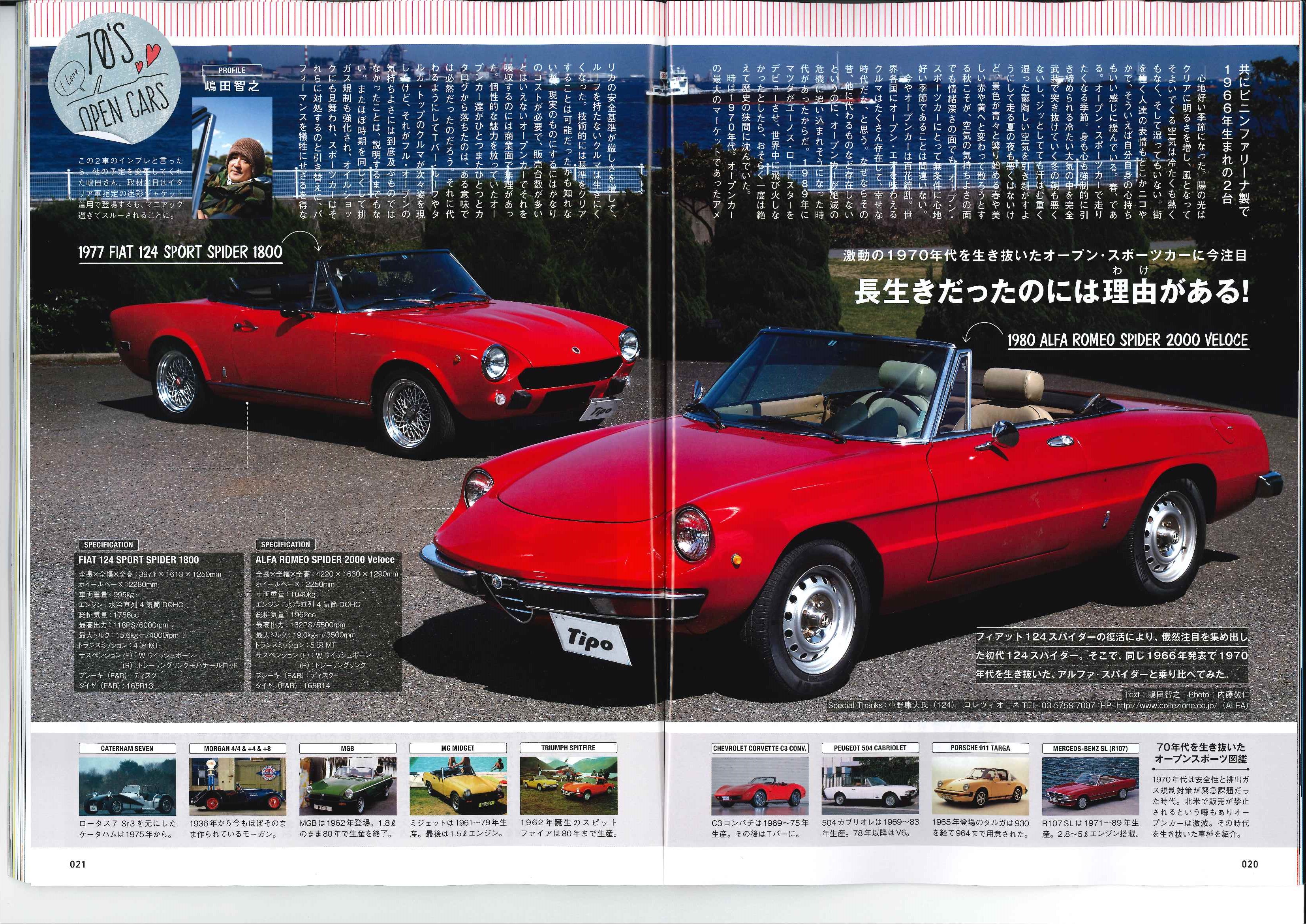 Tipo!! カテゴリー : Pressroom 2016年4月6日 ティーポNo323 2016年 5月号 表紙 20p~25p 「激動の1970年代を生き抜いたオープン・スポーツカーに今注目」コーナーにて弊社商品車・アルファロメオスパイダーが特集されました!! なんと表紙にも登場しております!