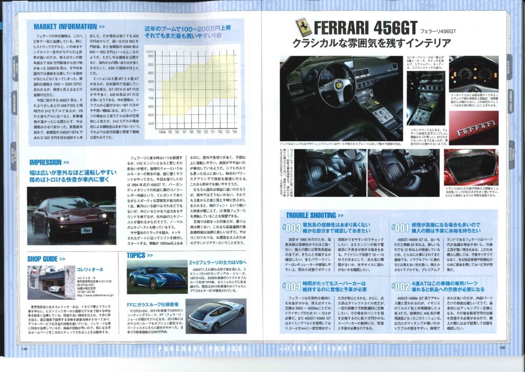 Tipo!! カテゴリー : ニュース 2015年10月8日 84p~89p145p~149p SYNCHRONICITYのコーナーにて 弊社商品車・アルファロメオジュリエッタ スプリント が特集されました! PurchaseProjectのコーナーにて取材を受けました!! 弊社商品車・フェラーリ456GTが 5ページにわたり出演しております!