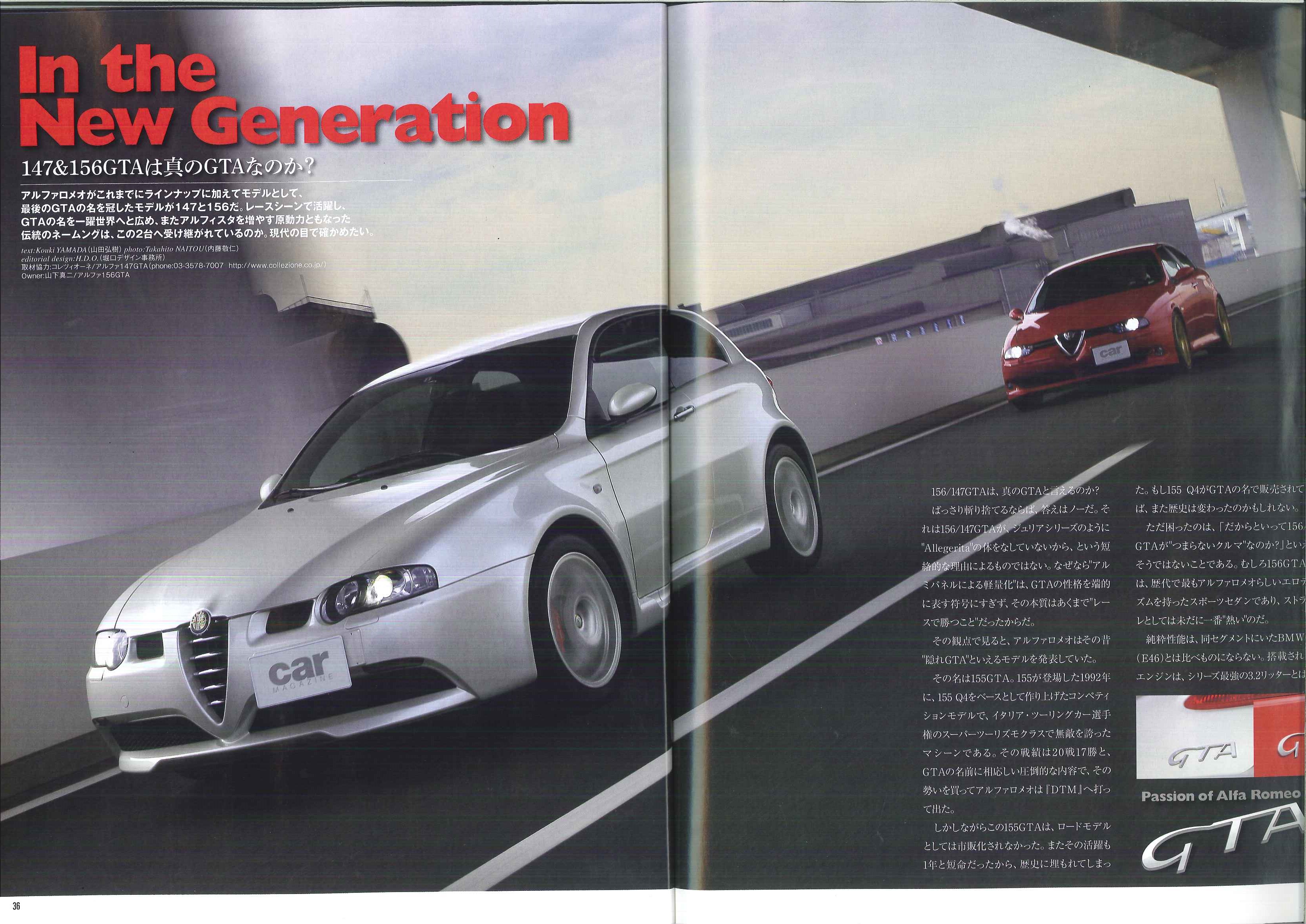 CARmagazine!! カテゴリー : Pressroom 2015年1月31日 CARmagazine 2015 3月号 No.441 36p~39p 「147&156GTAは真のGTAなのか?」のコーナーにて弊社がご紹介させていただいた147GTAとお客様と愛機156GTAが出演しております!!