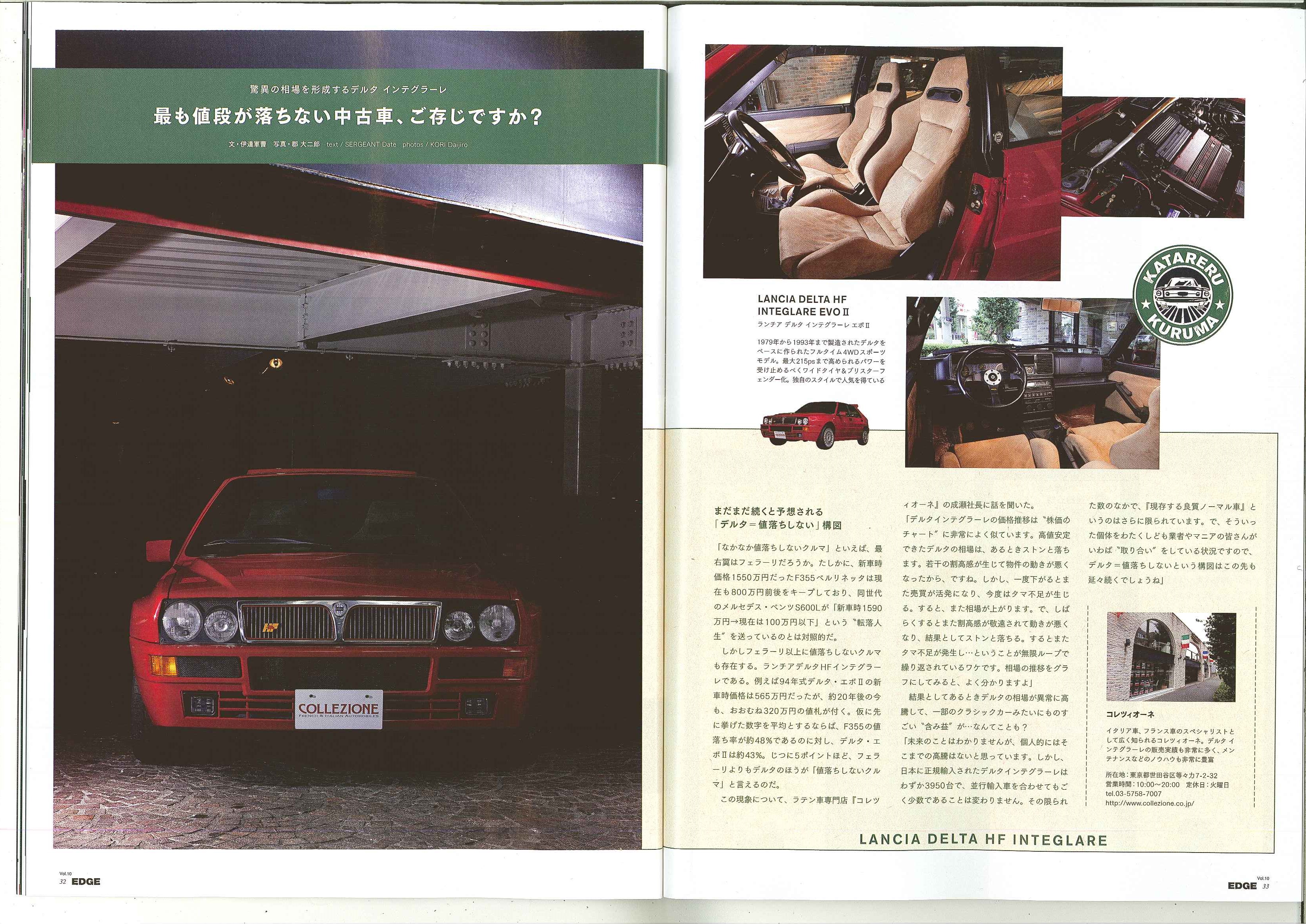 CarSensorEDGE!! カテゴリー : Pressroom 2013年9月9日 カーセンサーエッジ 2013 OCT 32p~33p 「語れるクルマに乗ろう。」のコーナーにて取材を受けました。弊社商品車・ランチアデルタインテグラーレEVOⅡも出演しております!!