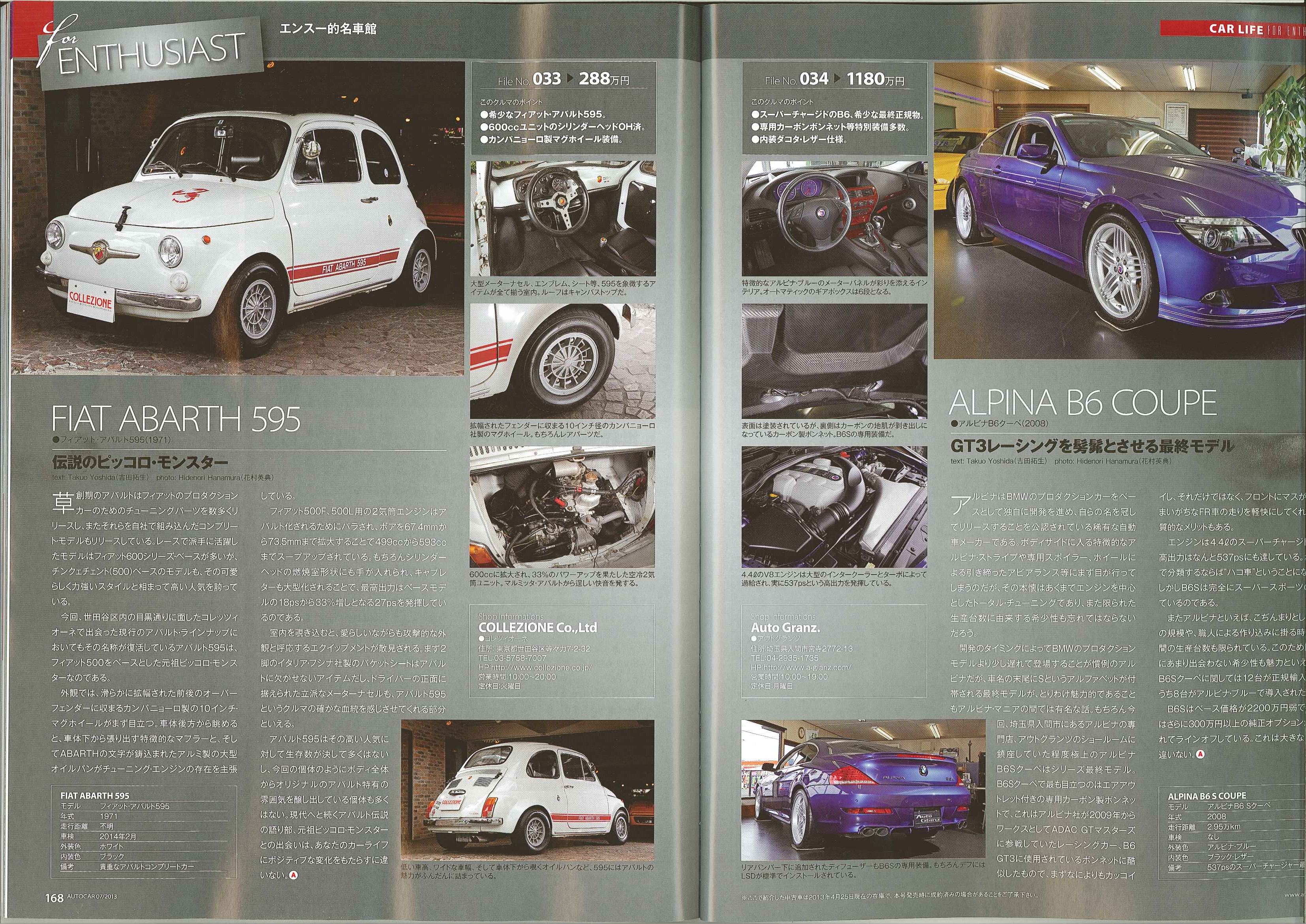 AUTOCAR!! カテゴリー : Pressroom 2013年5月29日 AUTOCAR vol,1222013-7月号 168P AUTOCARにて「エンスー的名車館!」のコーナーにて弊社商品車・フィアットアバルト595が出演しております!