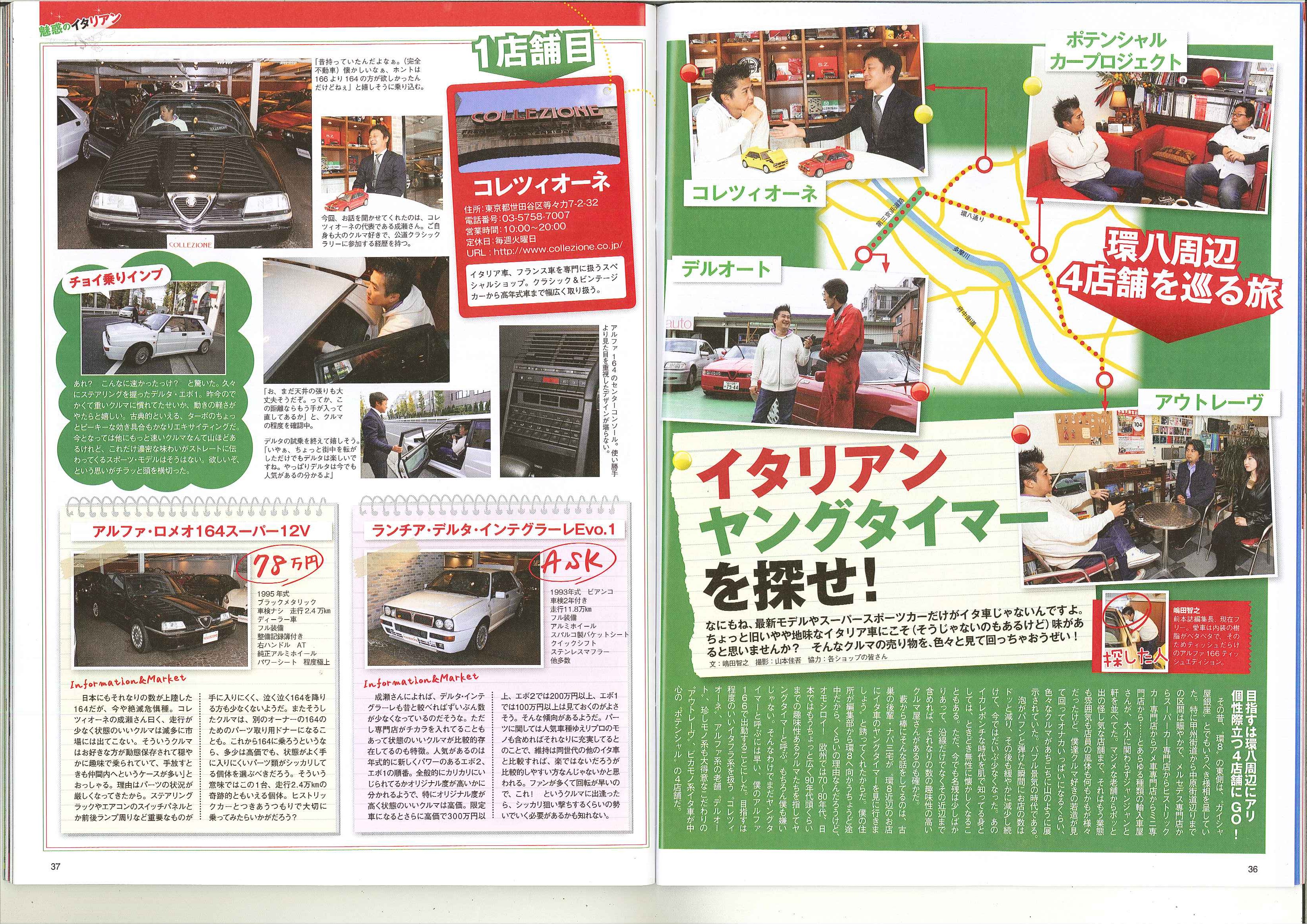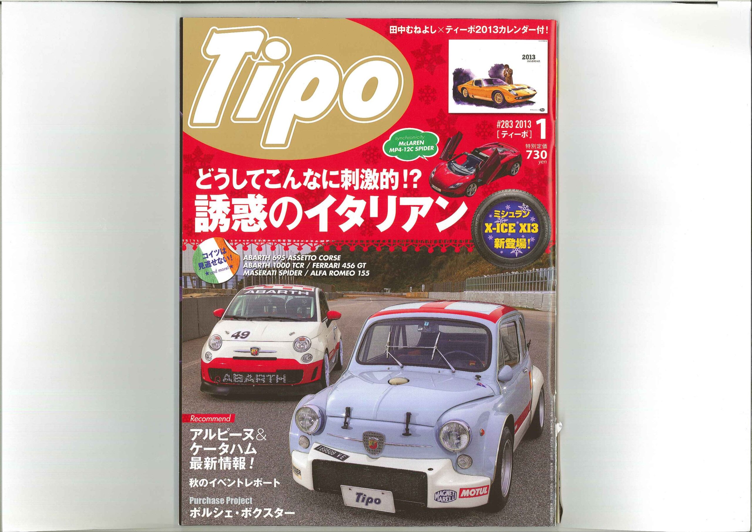 Tipo!! カテゴリー : Pressroom 2012年12月26日 ティーポNo283 1月号 36p~37p 「イタリアンヤングタイマーを探せ!」のコーナーにて取材をうけました!!弊社商品車・アルファロメオ164、ランチアデルタEVO1も出演しております!!