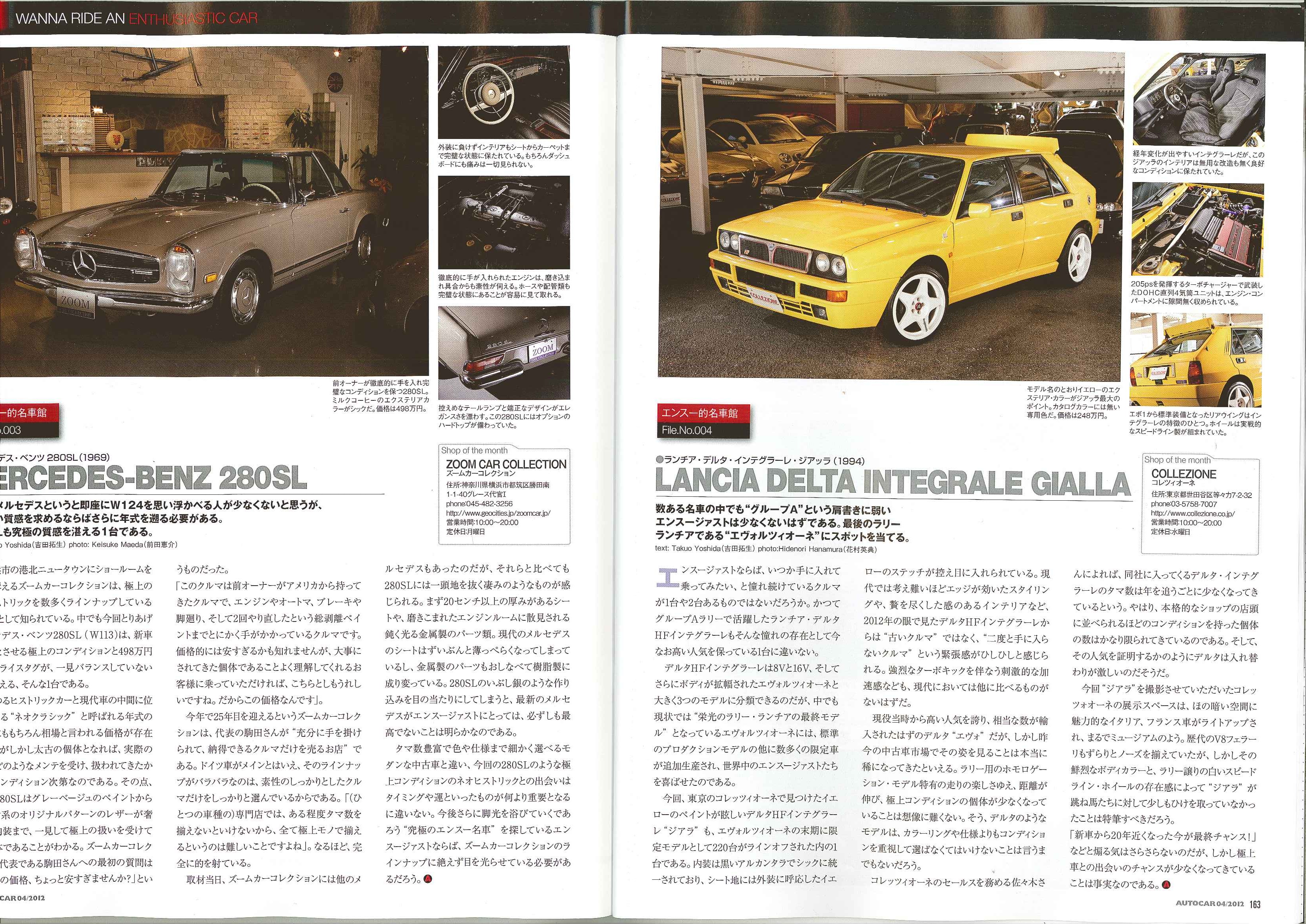 AUTOCARにて弊社商品車・ランチアデルタインテグラーレジアラが出演しております!! カテゴリー : Pressroom 2012年2月28日 AUTOCAR vol,1074月号 163p AUTOCARにて弊社商品車・ランチアデルタインテグラーレジアラが出演しました。 エンスー的名車館のコーナーで紹介されております!!