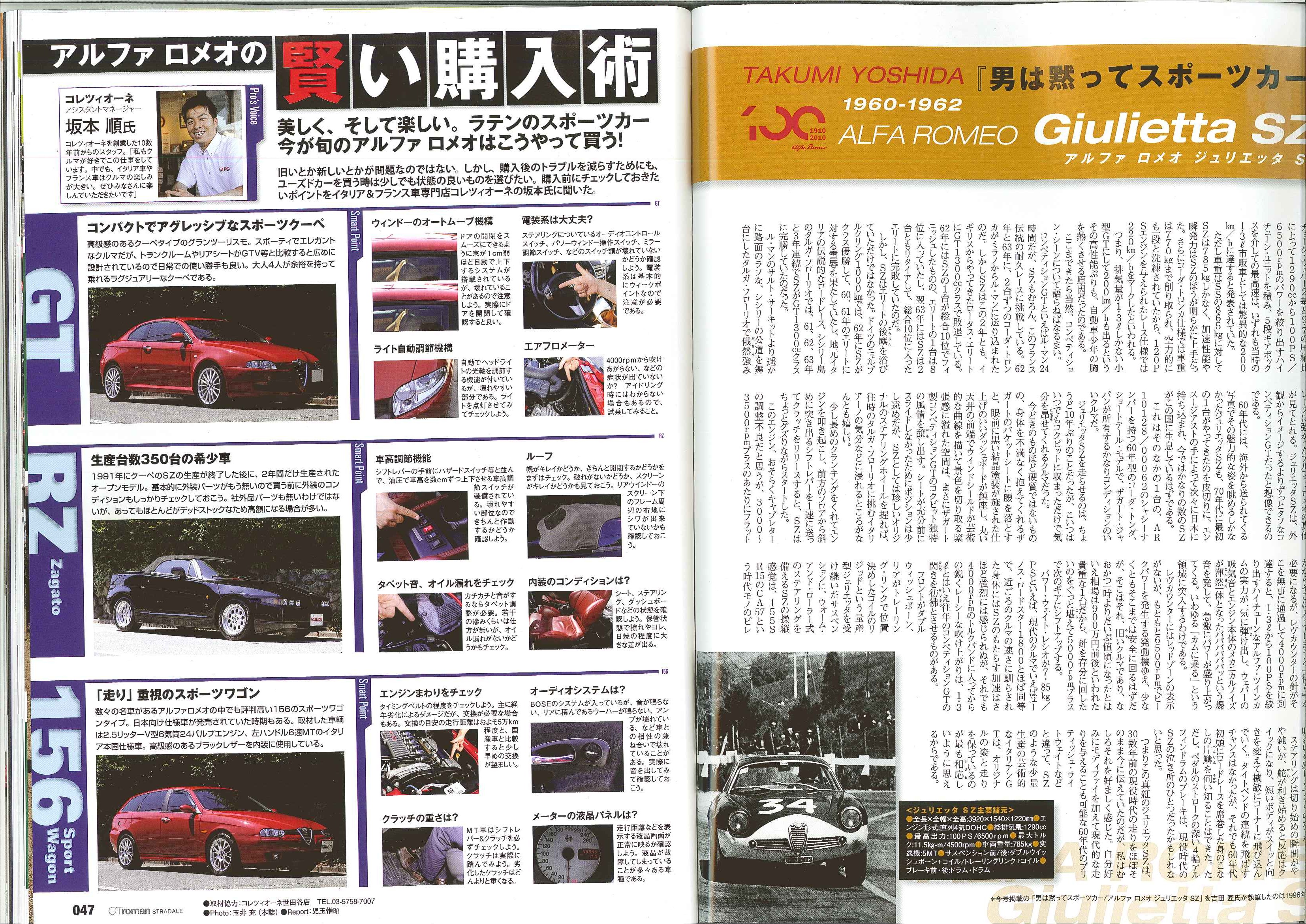 GTロマン ストラダーレ17 47p 68p 「アルファロメオの賢い購入術」のコーナーにて取材を受けました! 68pはタイアップ広告です。