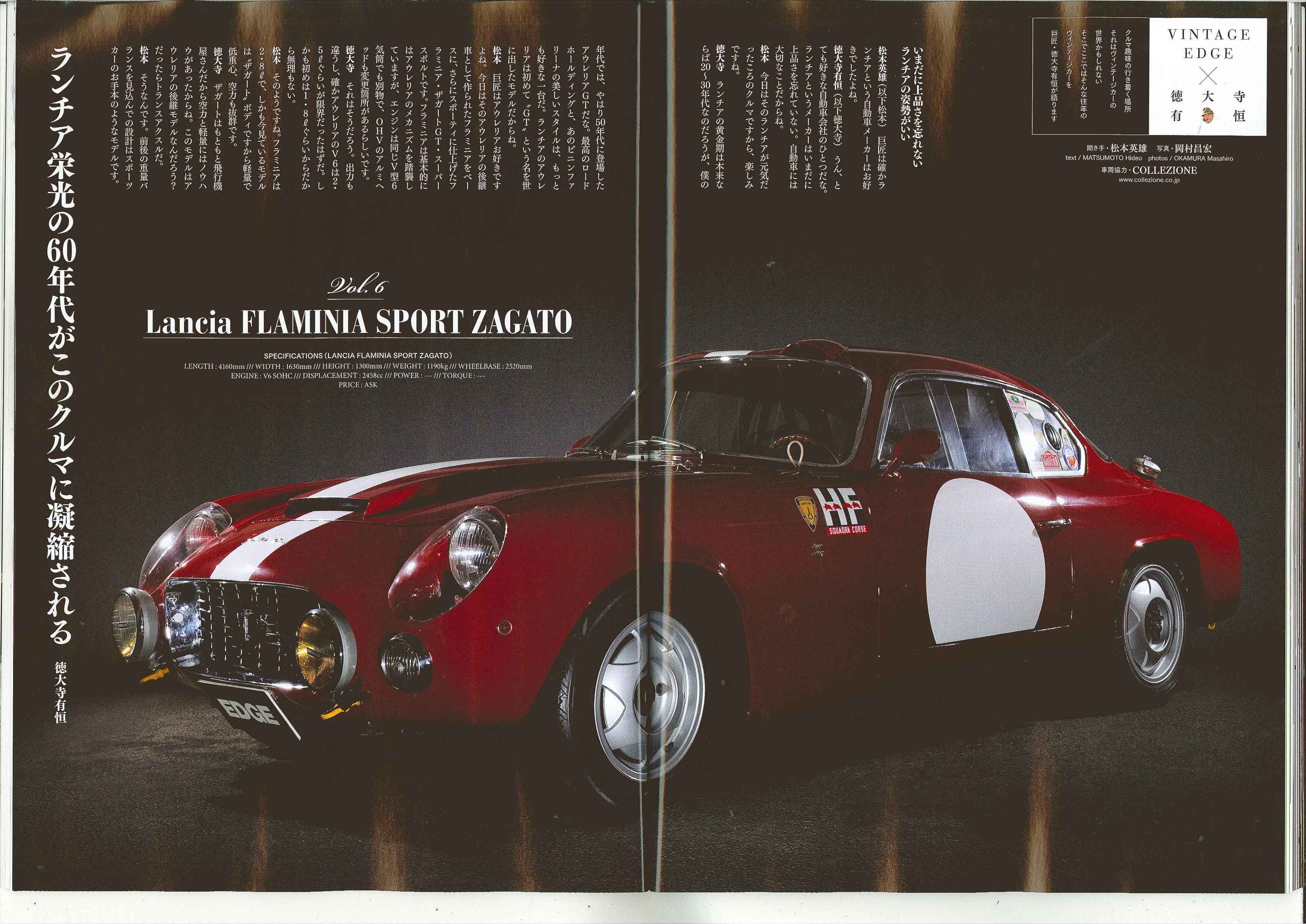 EDGEにて弊社商品車・ランチアフラミニアが出演しております! カテゴリー : Pressroom 2009年8月8日 EDGE9月号 別冊付録 88p~91p 「VINTAGEEDGEx徳大寺有恒」のコーナーにて弊社商品車・ランチアフラミニアが出演しております!!