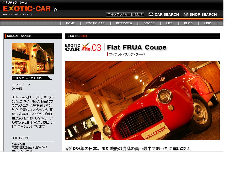 Webマガジン・スーパーカーとの「ゾクゾク」するような暮らし.エキゾチックカー.jpのEXOTIC CARのコーナーにて弊社商品車・フィアット1100フルアが特集されております! 下記URLよりご覧下さい。 http://www.exotic-car.jp/