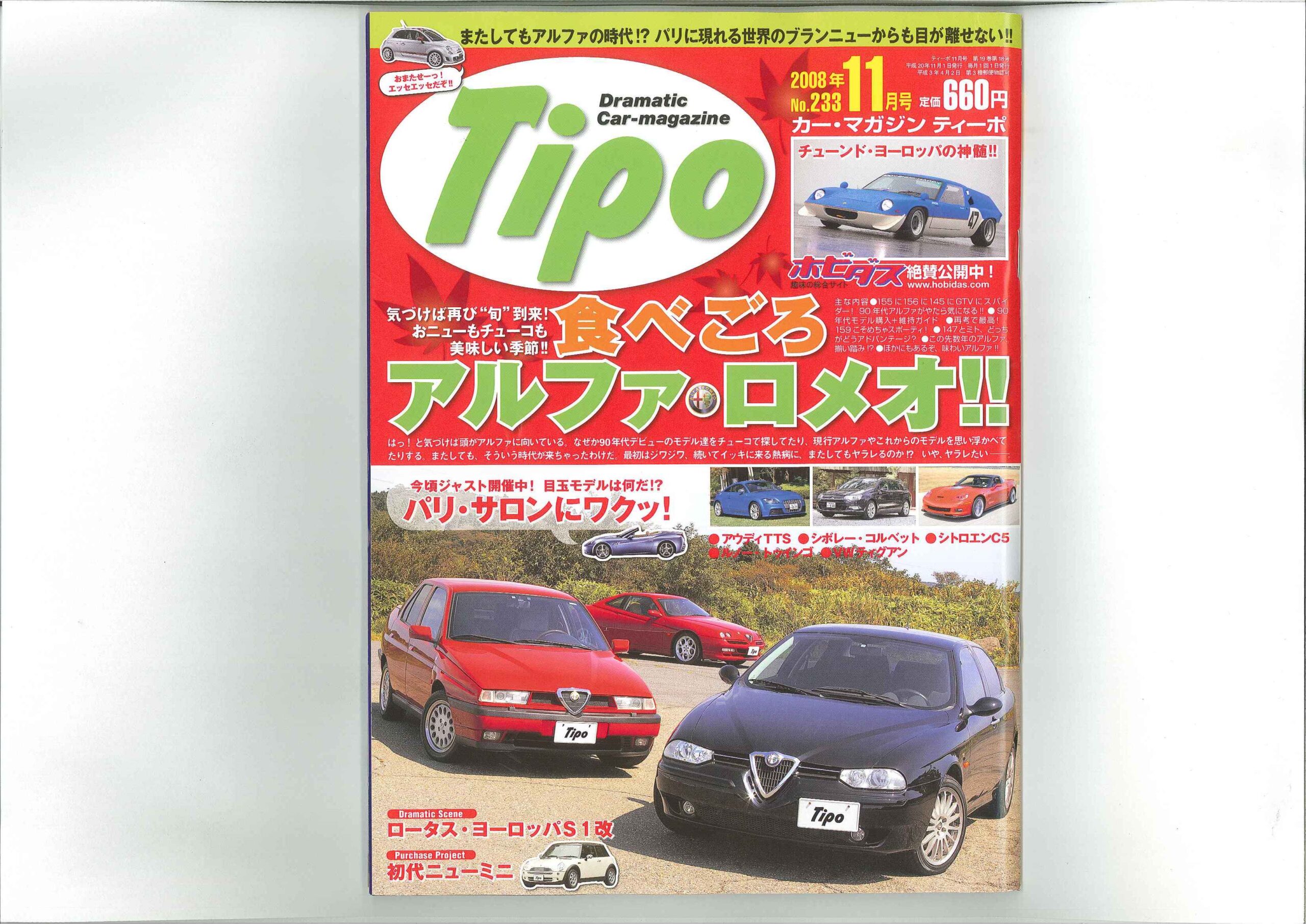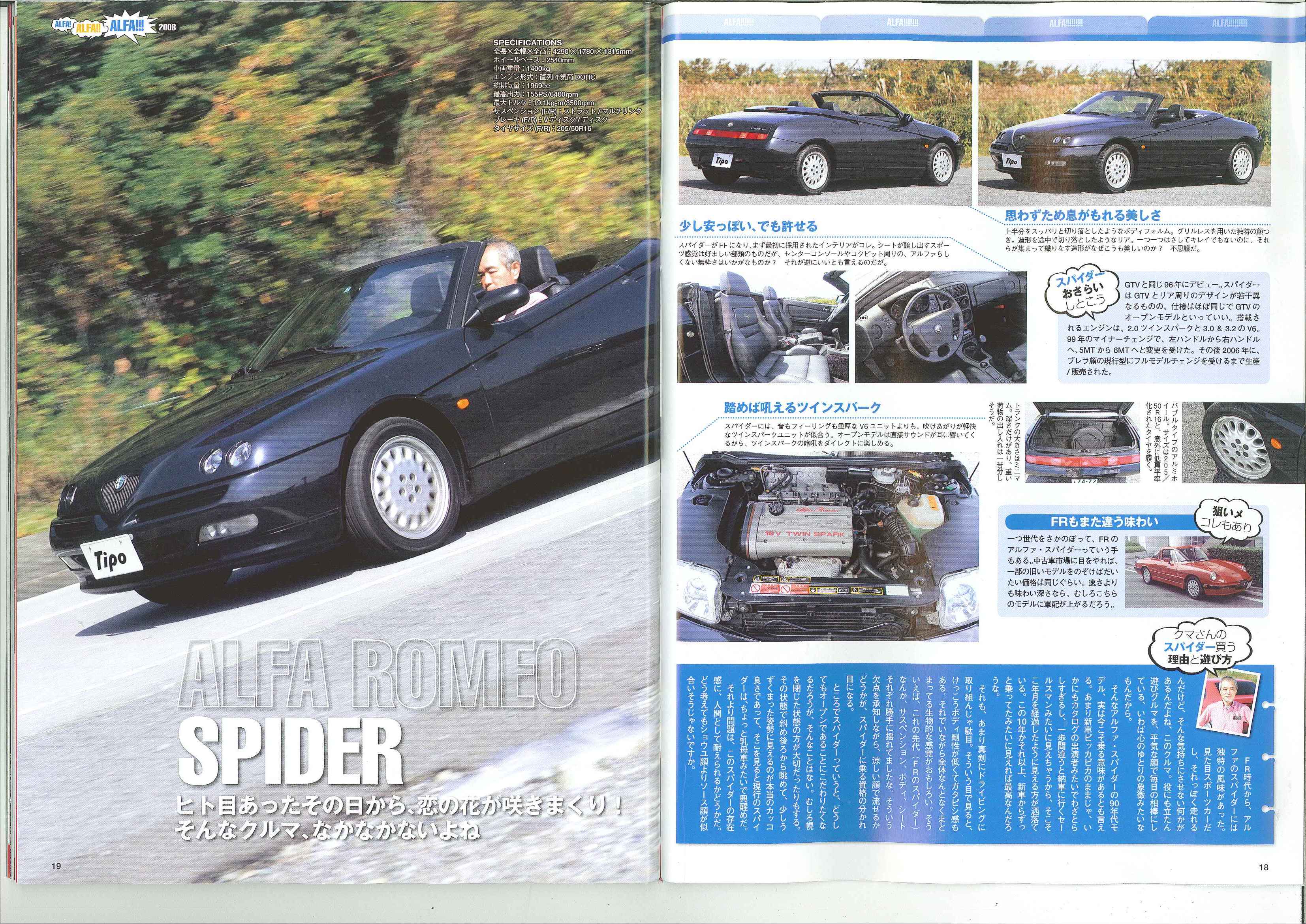 Tipoにて弊社商品車・アルファロメオスパイダーが出演しております! カテゴリー : Pressroom 2008年10月24日 TipoNo233 11月号 18p~19p 「ゾッコン!!90‘sアルファ」のコーナーにて弊社商品車・アルファロメオスパイダーが同年代のアルファ達と共演しております!!