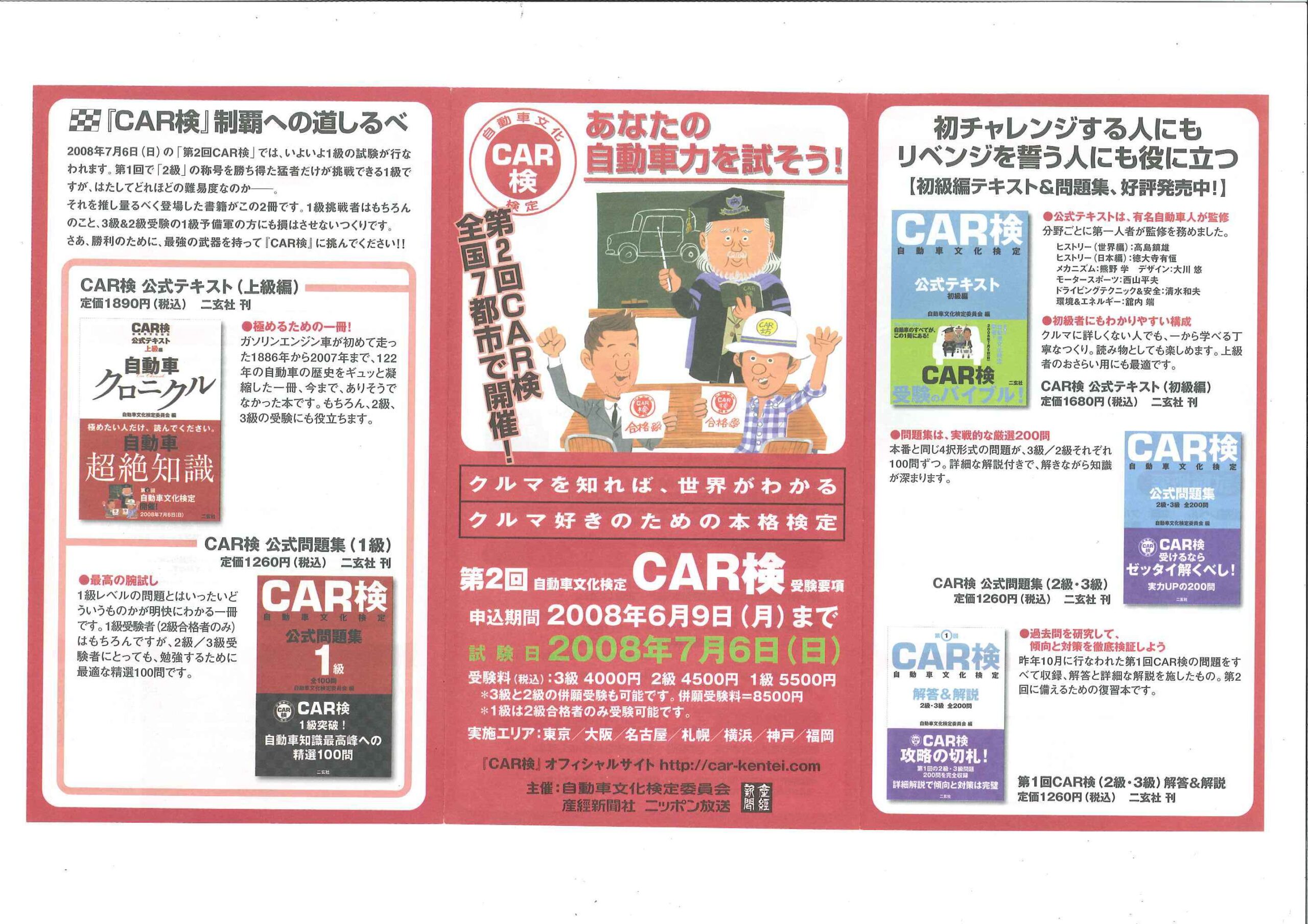 第2回自動車文化検定CAR検の申込受付締切まであとわずかです。 弊社に願書がございますので受付をされていない方はご来店下さい。またHPからの申込をされる方はhttp://www.car-kentei.com/をご参照下さい。