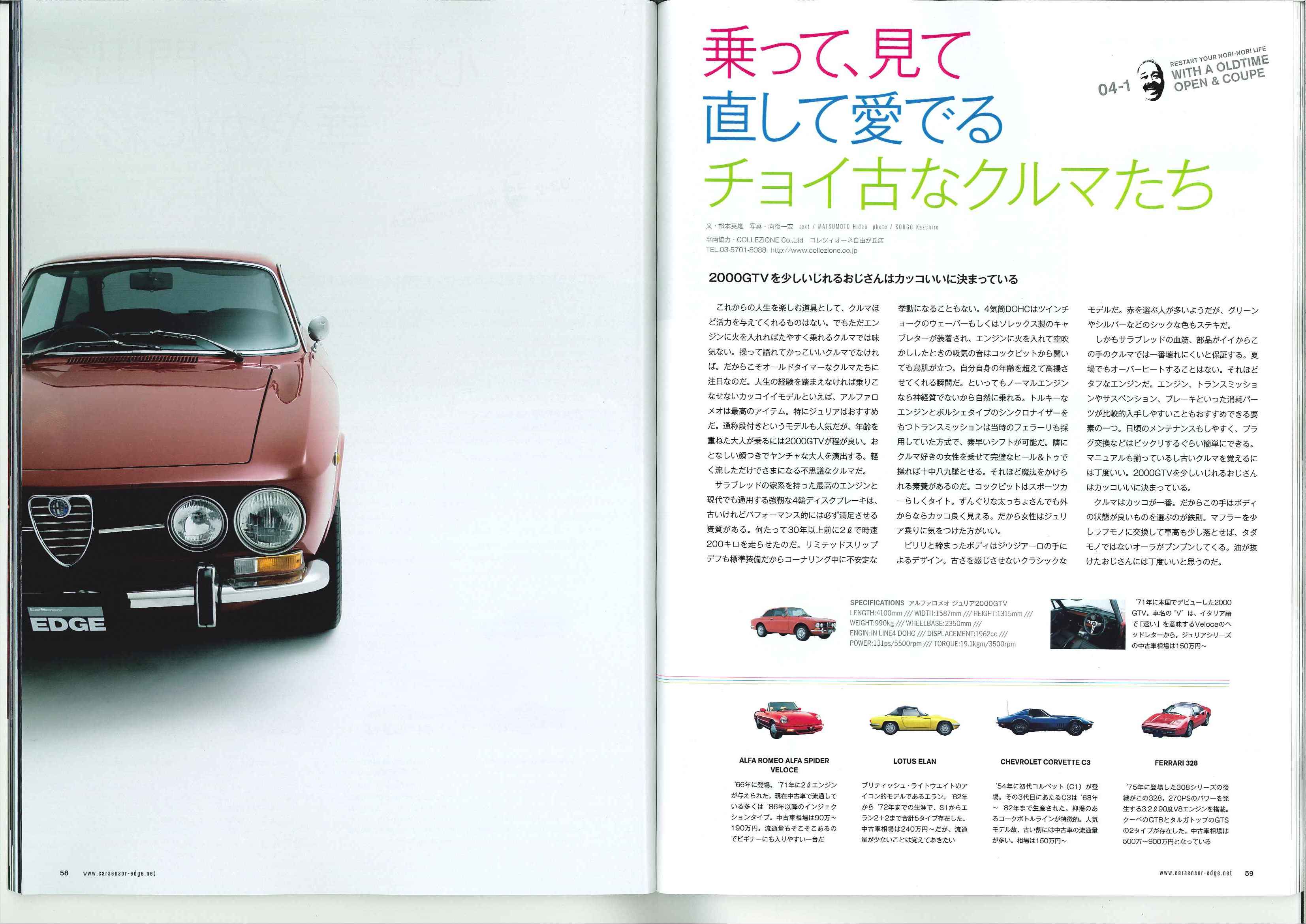 EDGEVOL44 6月21日号 別冊付録 58p~59p 「クルマで人生リスタート」のコーナーにて 弊社商品車・アルファロメオ2000GTVが 出演しております!