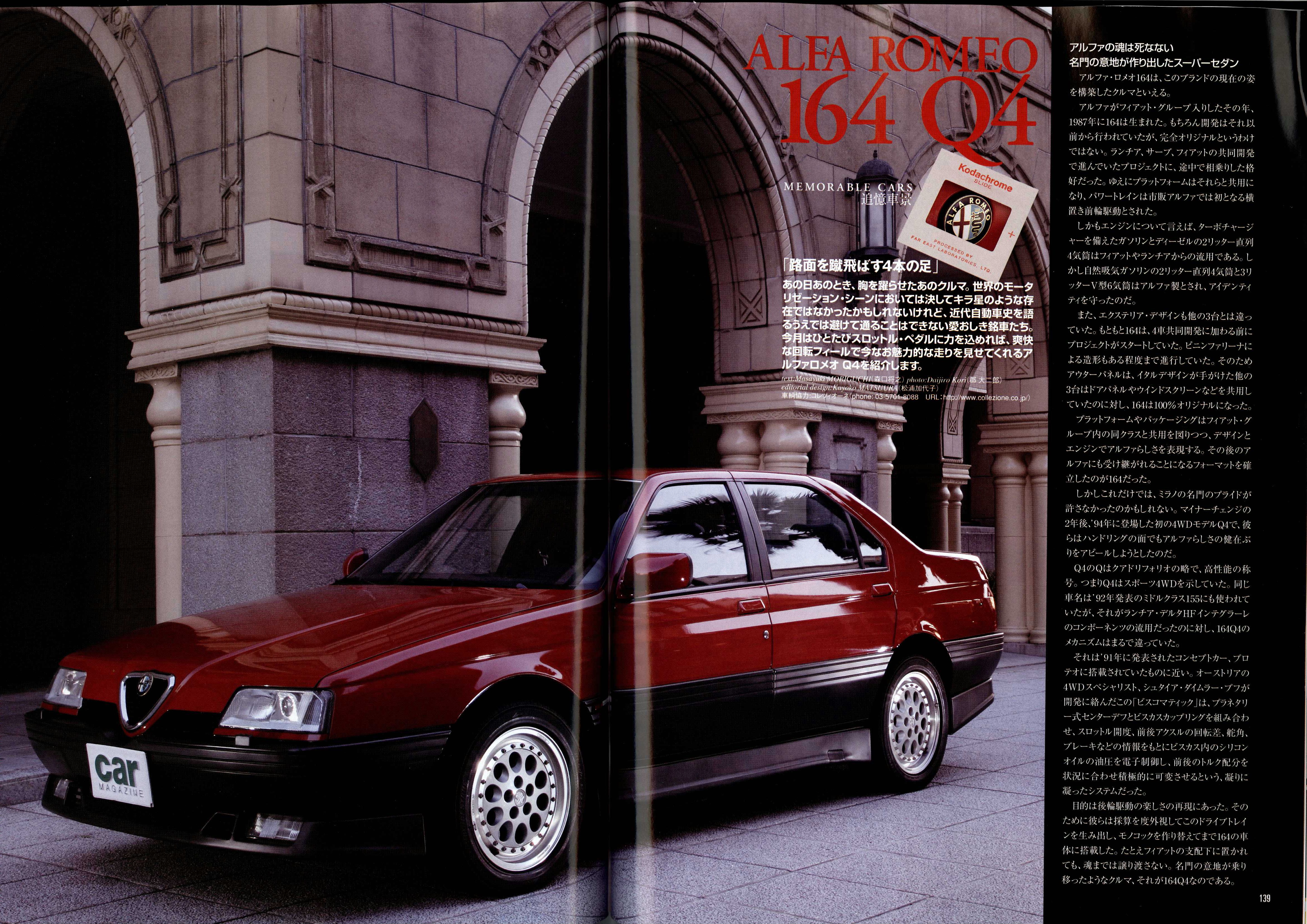 carMAGAZINEにて弊社商品車・アルファロメオ164Q4が特集されました! カテゴリー : Pressroom 2007年3月2日 carMAGAZINE2007 4月号 No.346 138p~143p 64p~67p ランチアイプシロンも出演しております。 164Q4「追憶車景」 ランチアイプシロン「300万÷2台のエンスー生活」 森口将之氏、佐橋健太郎氏のインプレッションです。