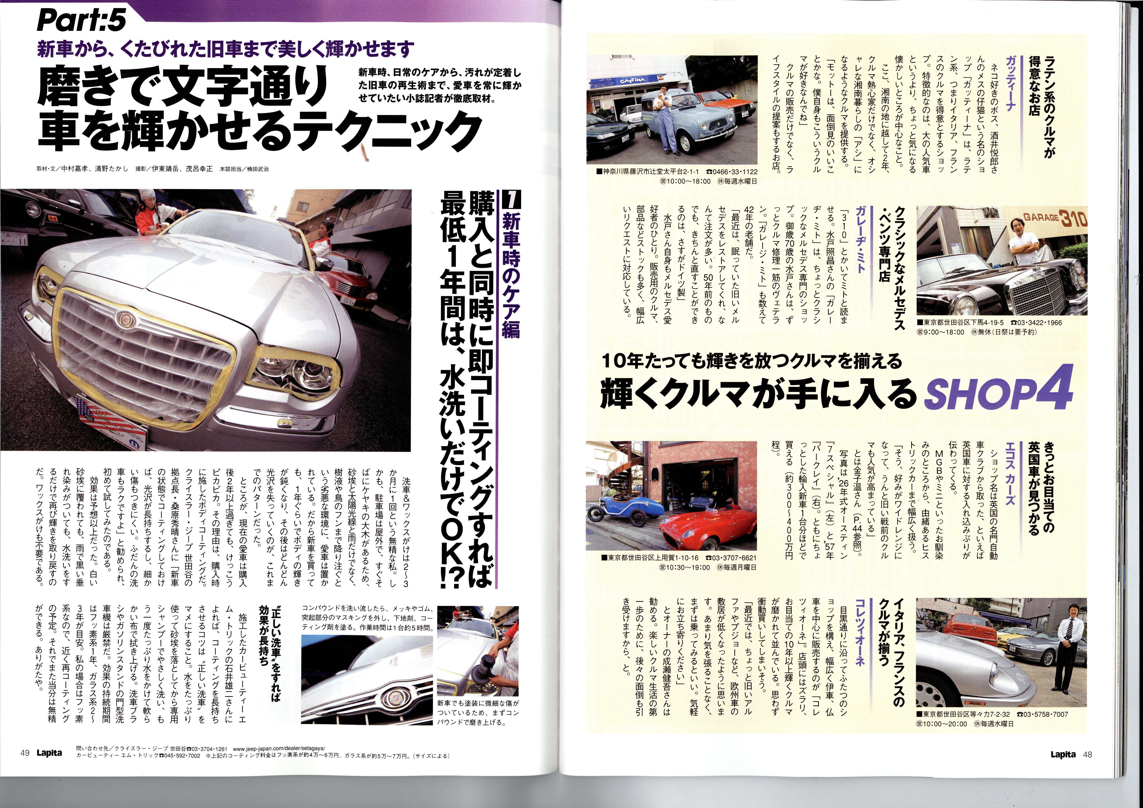 Lapitaにて取材されました! カテゴリー : Pressroom 2006年10月10日 Lapita11月号No.131 47p~48p 「輝く車が手に入るSHOP4」のコーナーにて 取材を受けました。 弊社のお客様も愛機と共に出演しております。