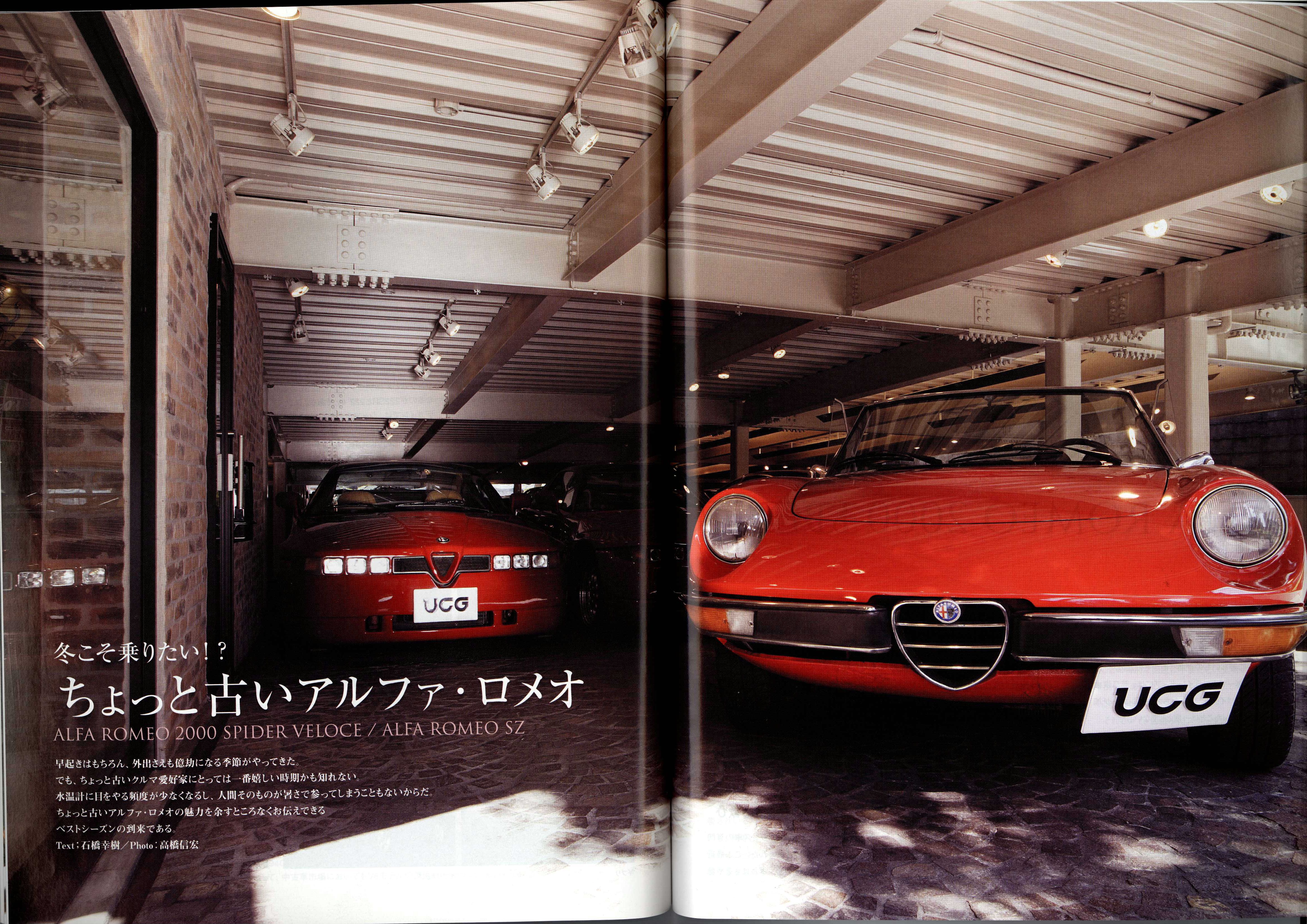 UCG誌にて、弊社商品車・アルファSZ・アルファスパイダー・マセラティクワトロルテ大特集!! カテゴリー : Pressroom 2006年1月2日 UCG2006年1月号VOL6298~117ページ ファッションページでもアルファスパイダーが モデルさんと共演しております。 島下泰久氏、石橋幸樹氏のインプレッションです。