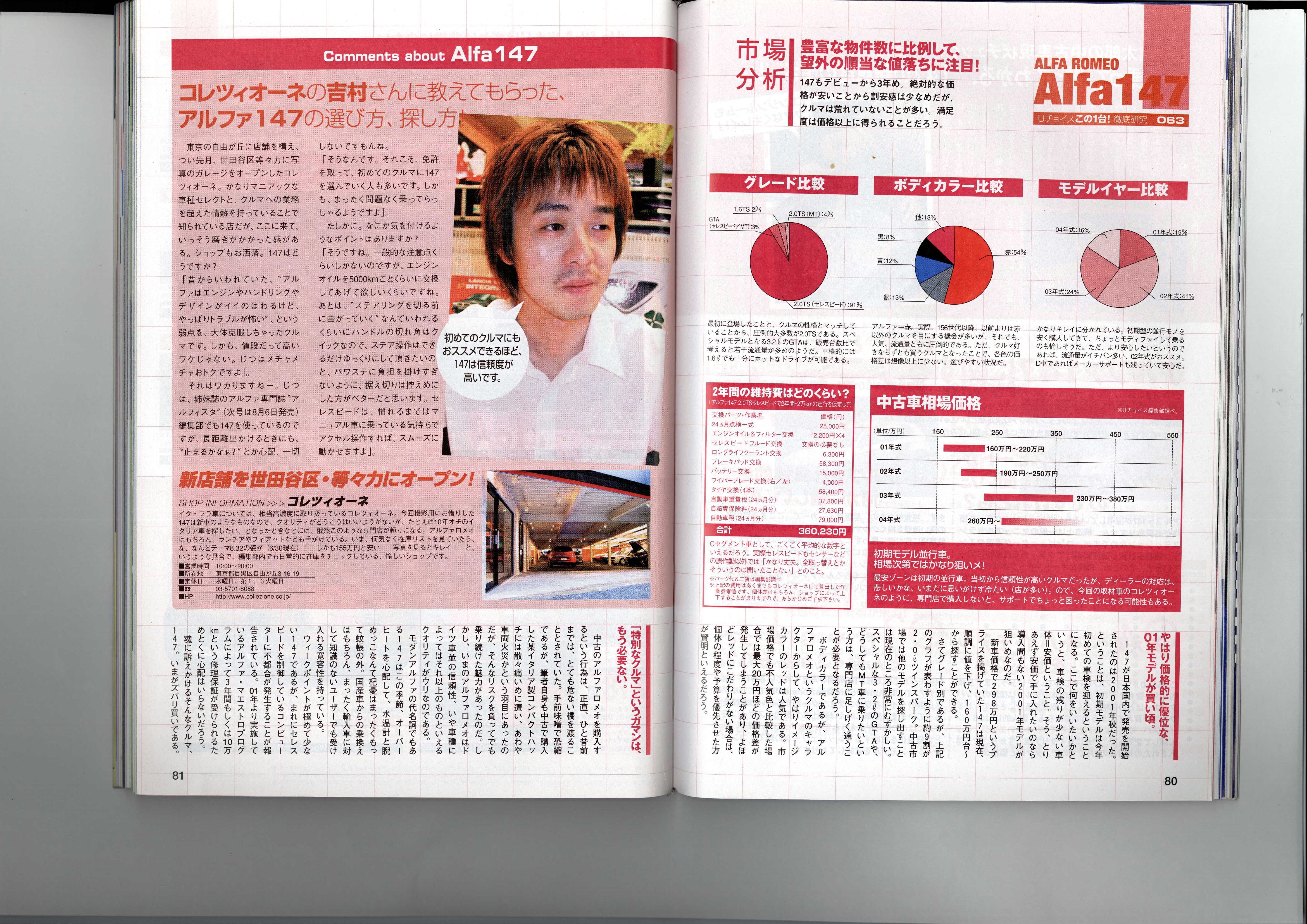 Uチョイスにて弊社商品車・アルファロメオ147特集!! カテゴリー : Pressroom 2004年9月1日 Uチョイス 2004年9月号 72~83ページ オープン間もない新店舗も紹介して頂きました。