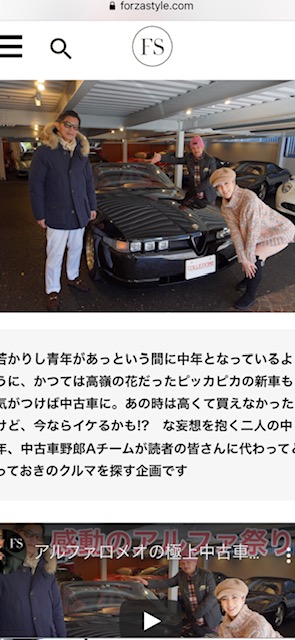忙しい40代のために最速で本質に迫るメンズファッション&ライフスタイルのウェブマガジン、フォルツァスタイルにて Aチームのお二人が読者の皆様に代わってとっておきの車を探します。 今回は2本立てで第二弾はアルファロメオ特集になります。 下記HPアドレスよりご覧ください!! https://www.youtube.com/watch?v=WPNkSixtnOQ