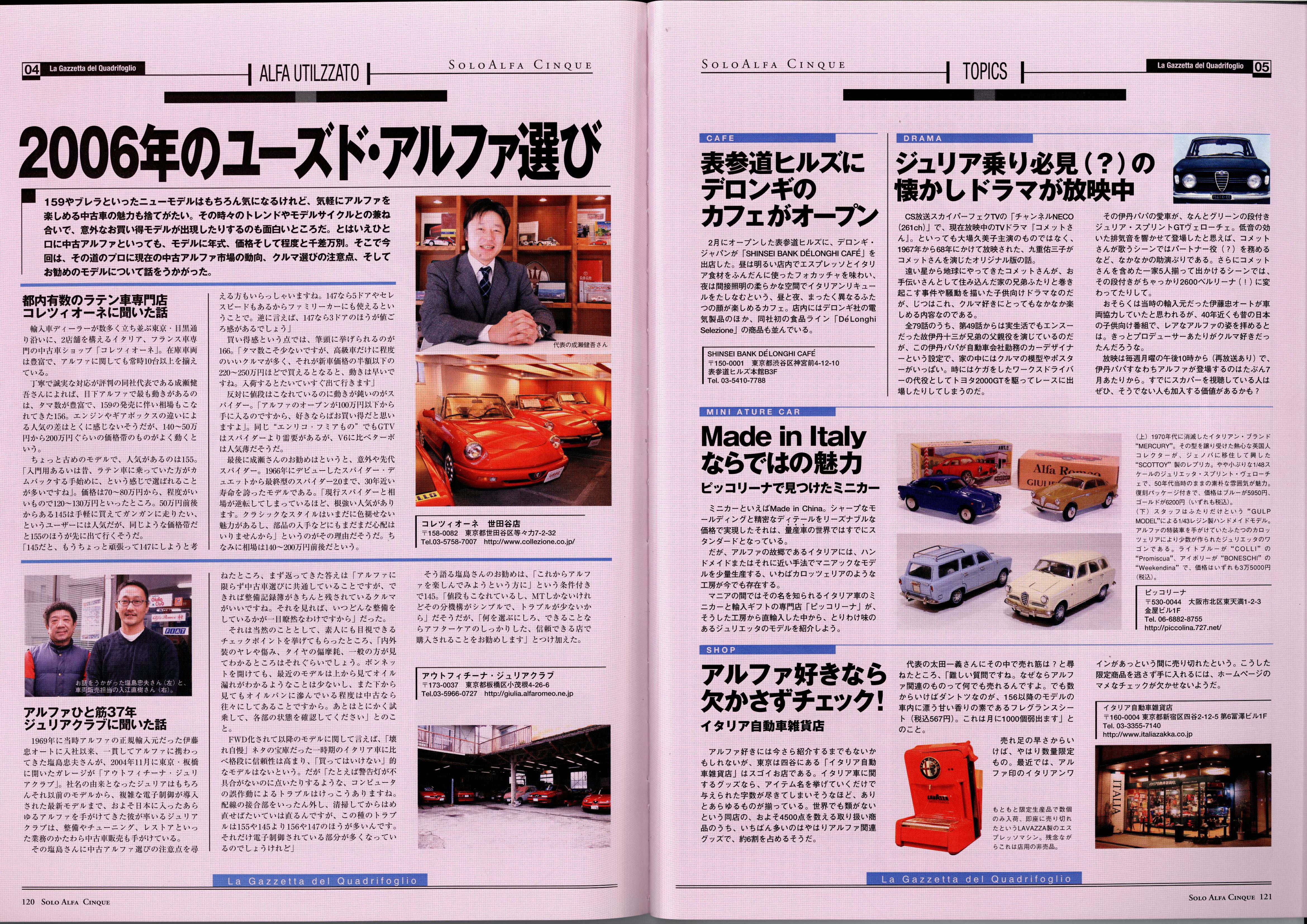 SoloAlfacinque 120p 2006年のユーズド・アルファ選びのコーナー にて取材を受けました。新旧のアルファロメオ情報が 満載です。