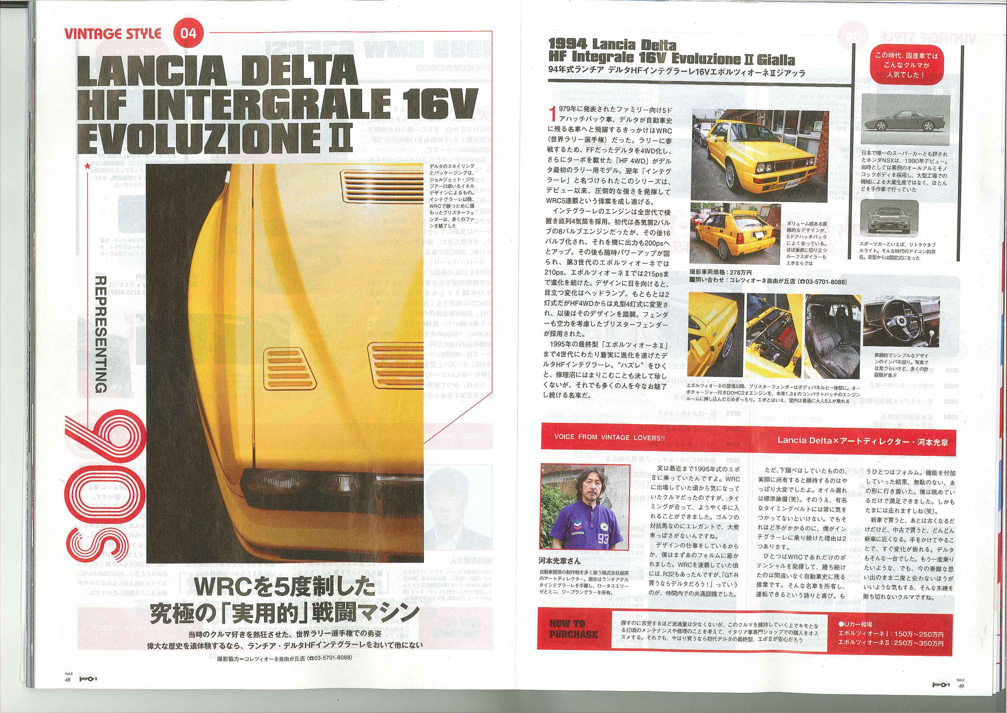 importCarsensorvol,210号 「VINTAGE STYLE」のコーナーにて弊社商品車・ランチアデルタインテグラーレEVOⅡが出演しております。車両は限定車のGiallaです!