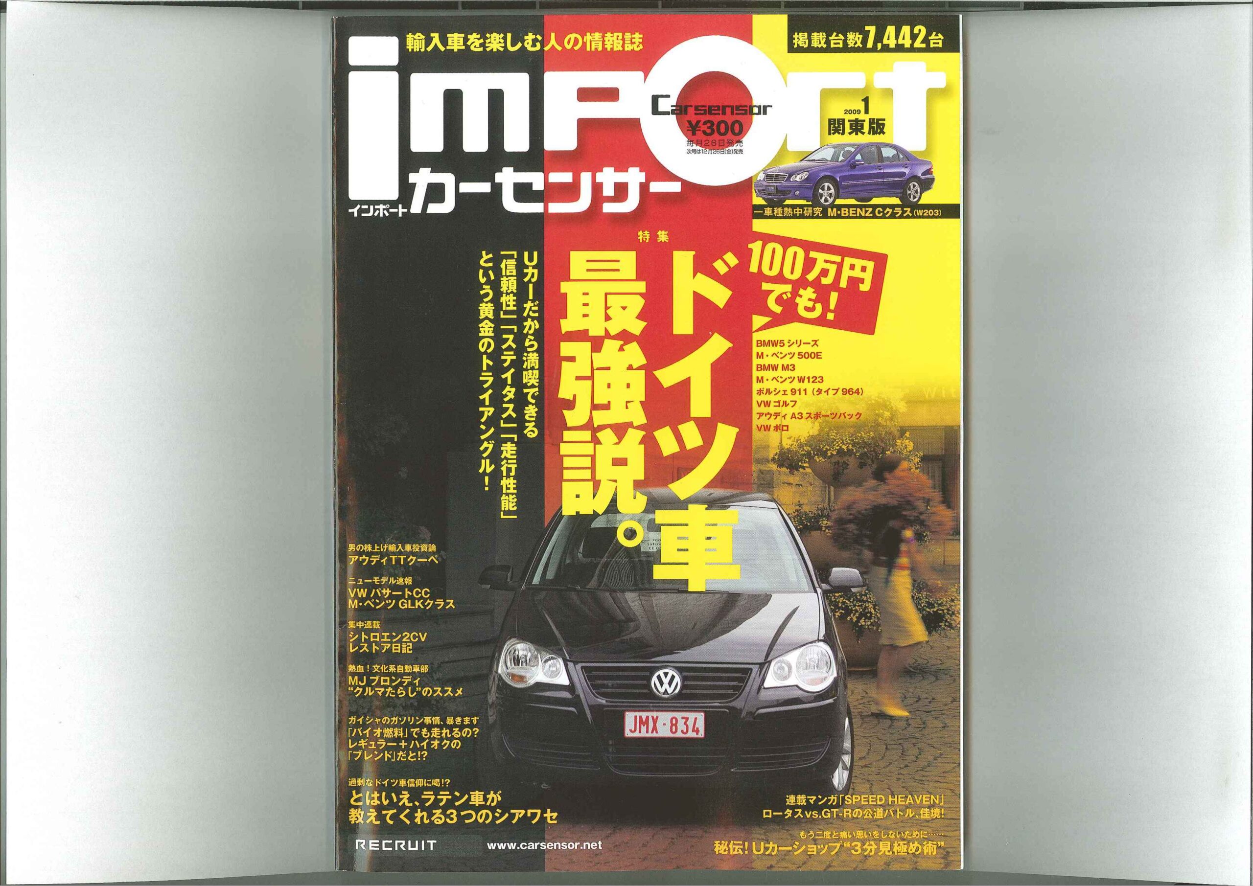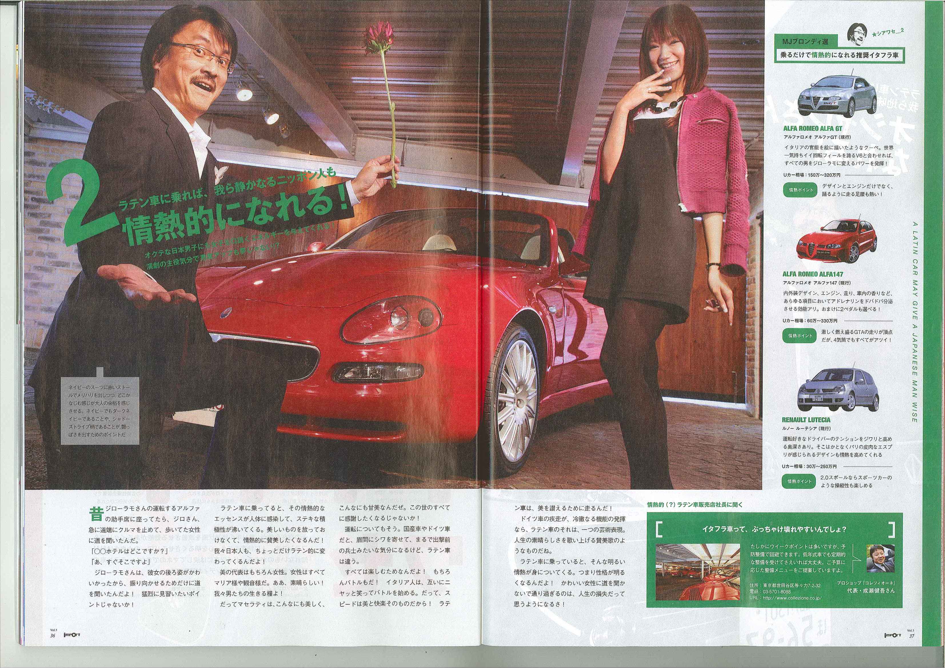import Carsensor2009 1月号 34p~39p 「ラテン車が教えてくれる 3つのシアワセ」のコーナーにて取材を受けました。弊社商品車が自由ヶ丘店、世田谷店でMJブロンディ氏とモデルの方と共演しております!!