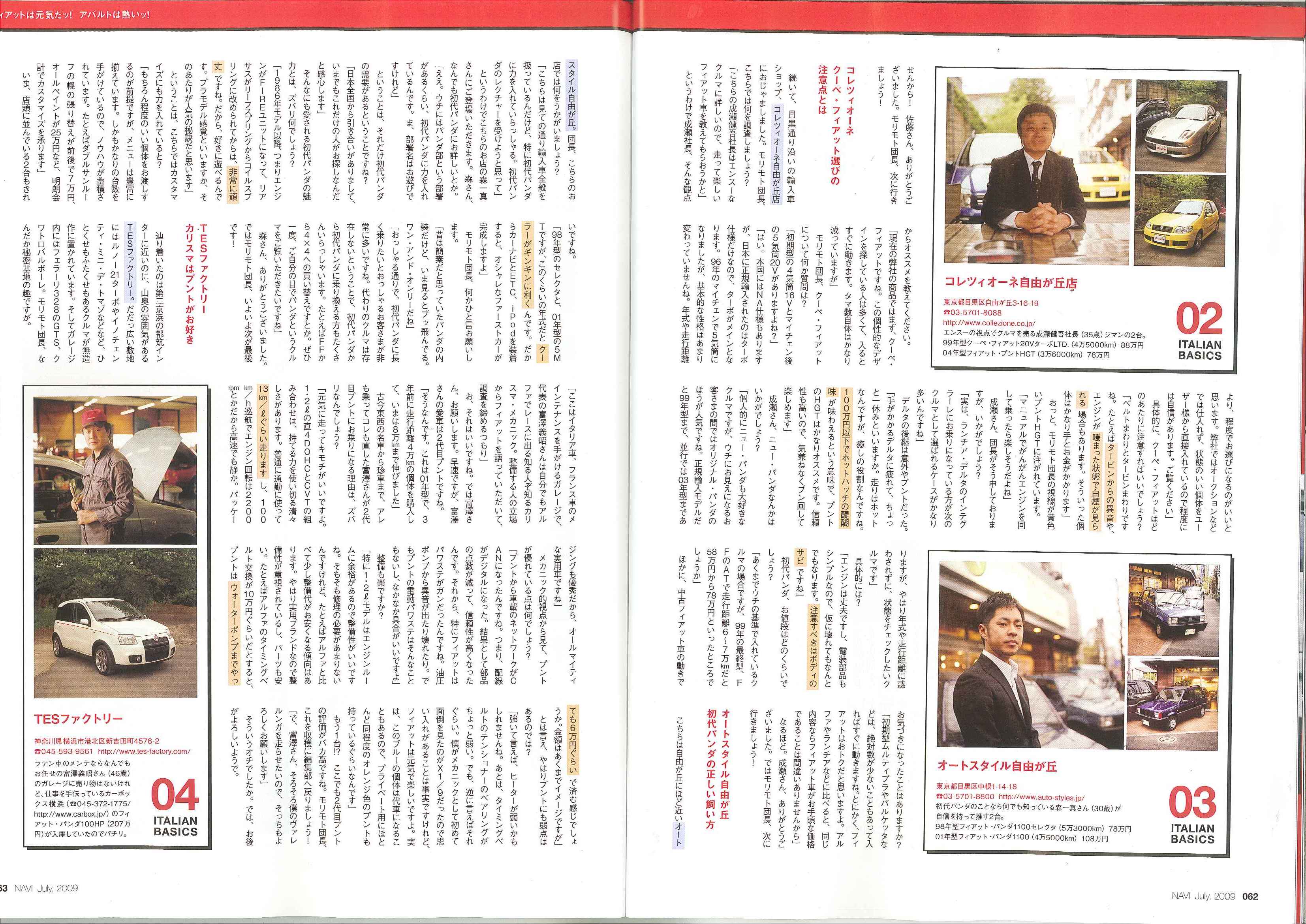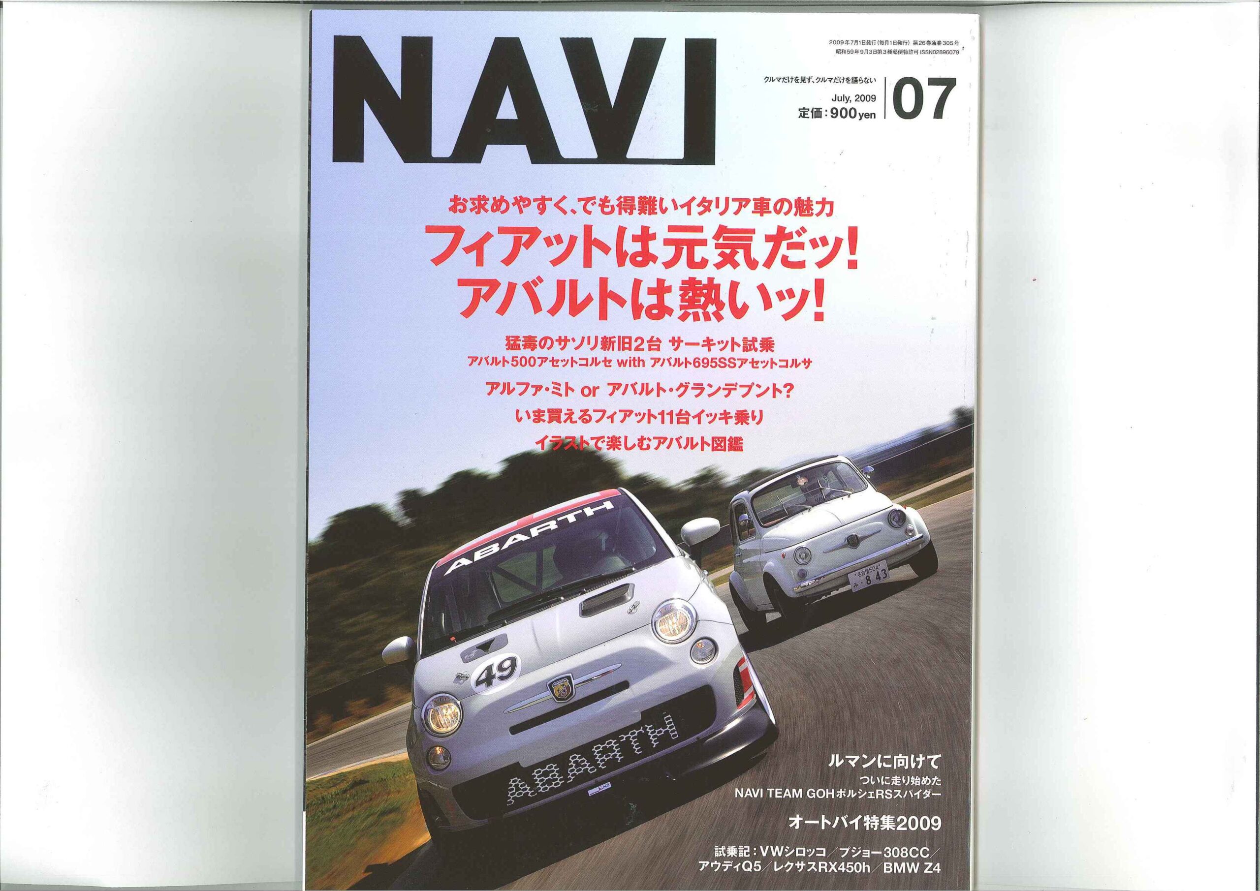 NAVI20097月号 62p 「フィアットは元気だッ!アバルトは熱いッ!」のコーナーにて取材を受けました。弊社商品車・クーペフィアットLTD、フィアットプントHGTも出演しております!