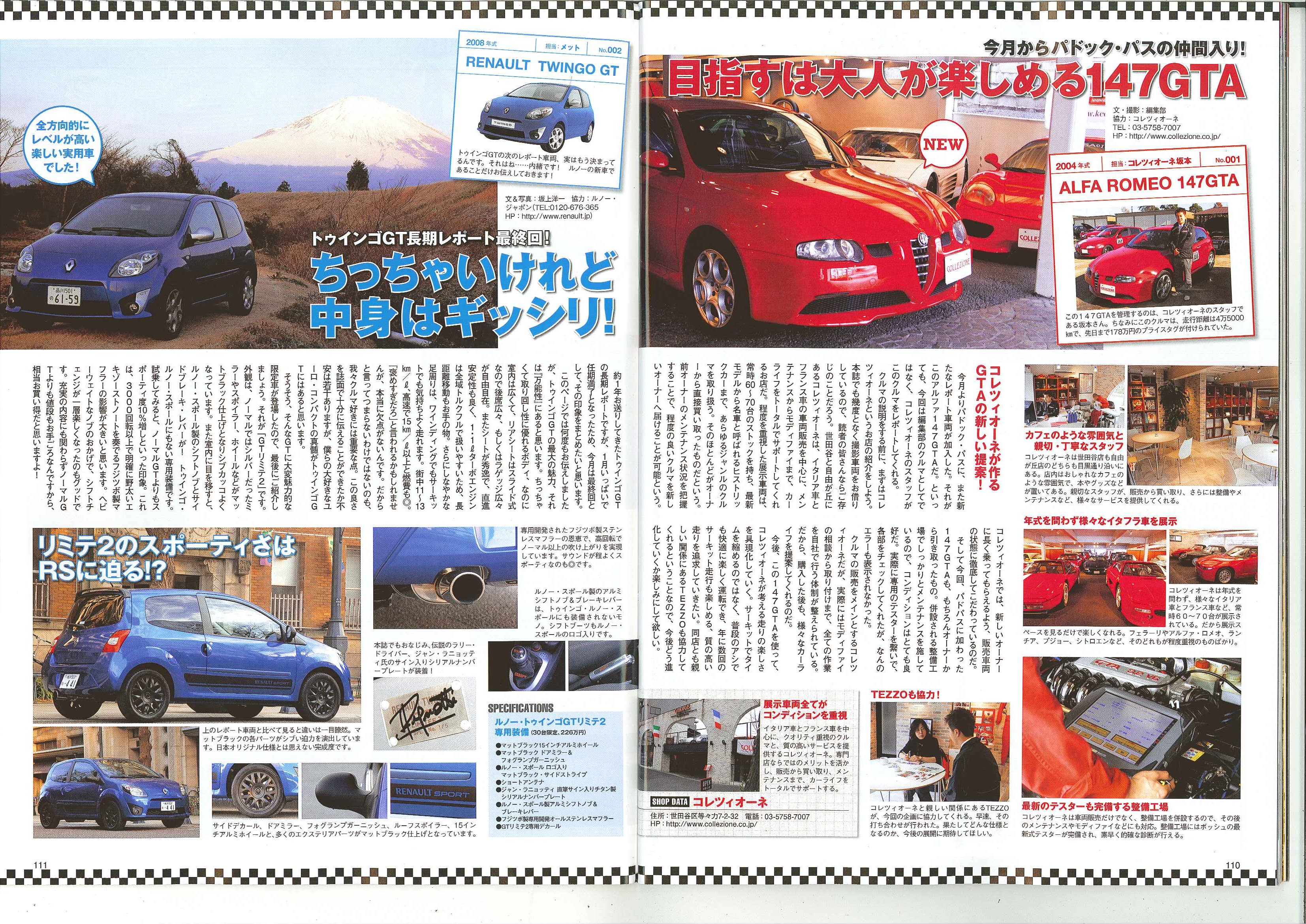 TipoNo249 3月号 110p Tipo編集部員による愛車奮闘記「PADDOCKPASS2010」のコーナーにて弊社商品車・アルファロメオ147GTAが出演しております! このアルファロメオ147GTAを弊社の坂本が編集部の方々と共にレポートさせていただくことになりました!!