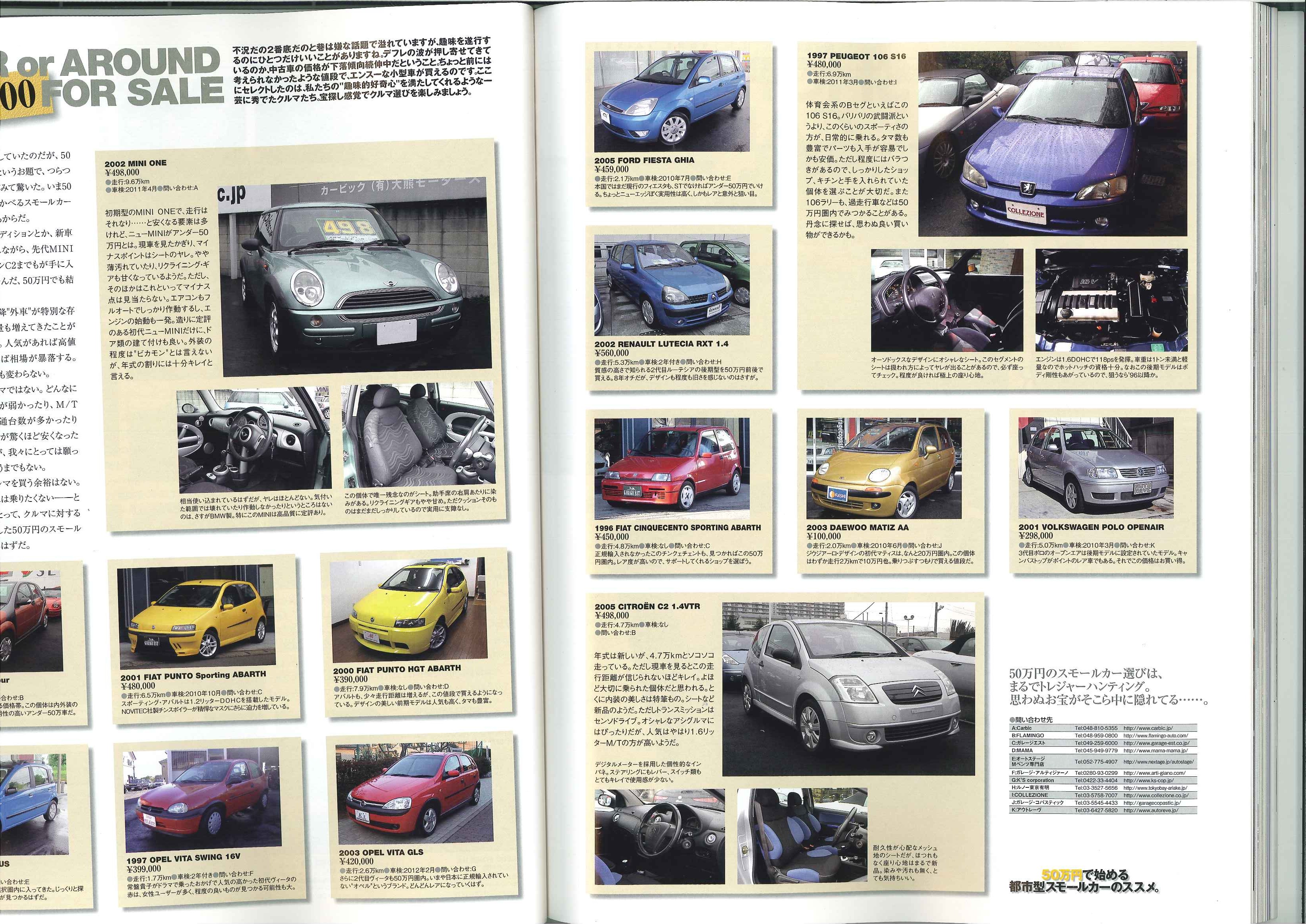 carMAGAZINE2010 4月号 No.382 55p 「50万円で始める都市型スモールカーのススメ」のコーナーにて弊社商品車・プジョー106 S16が出演しております!