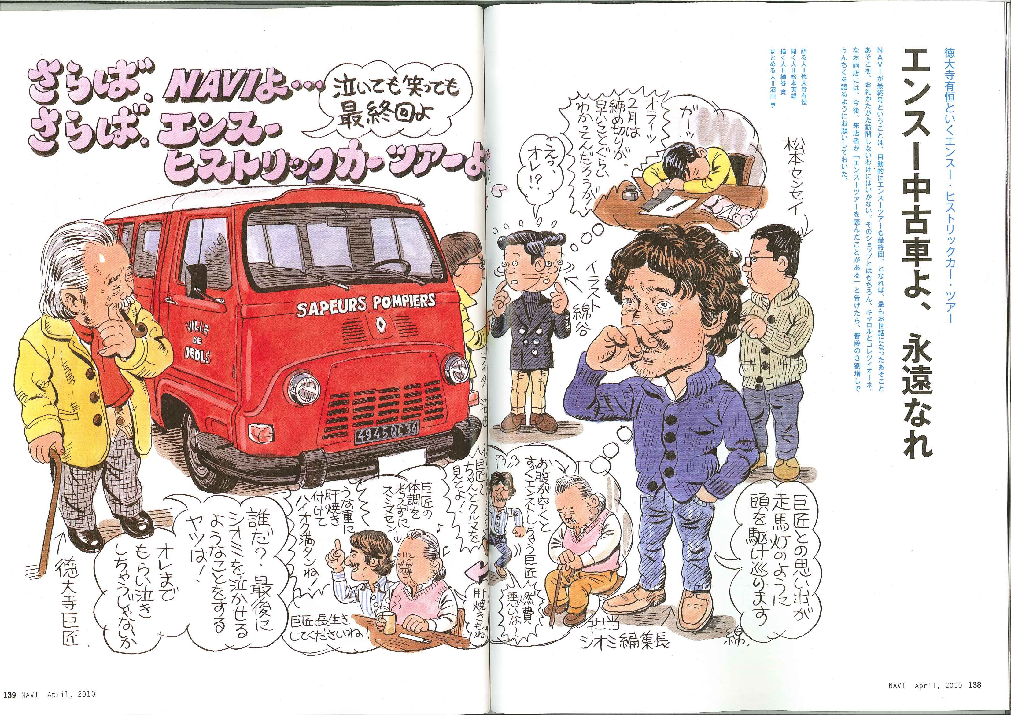 NAVI 2010・4月号 138p~145p 編集長 塩見 智 「エンスー中古車よ、永遠なれ」 徳大寺巨匠・松本先生ご一行がご来店くださいました。 またのご来店をスタッフ一同心よりお待ちしております。 今後共、誠に恐縮ではございますが ご指導の程宜しく御願いいたします。