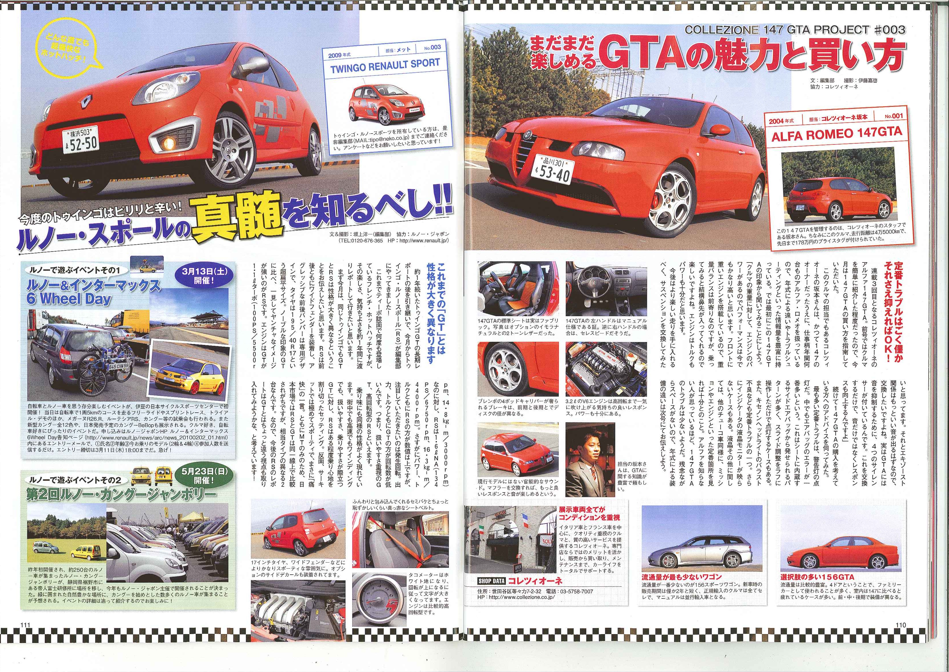 TipoNo250 4月号 110p Tipo編集部員による愛車奮闘記「PADDOCKPASS2010」のコーナーにて弊社商品車・アルファロメオ147GTAが出演しております!