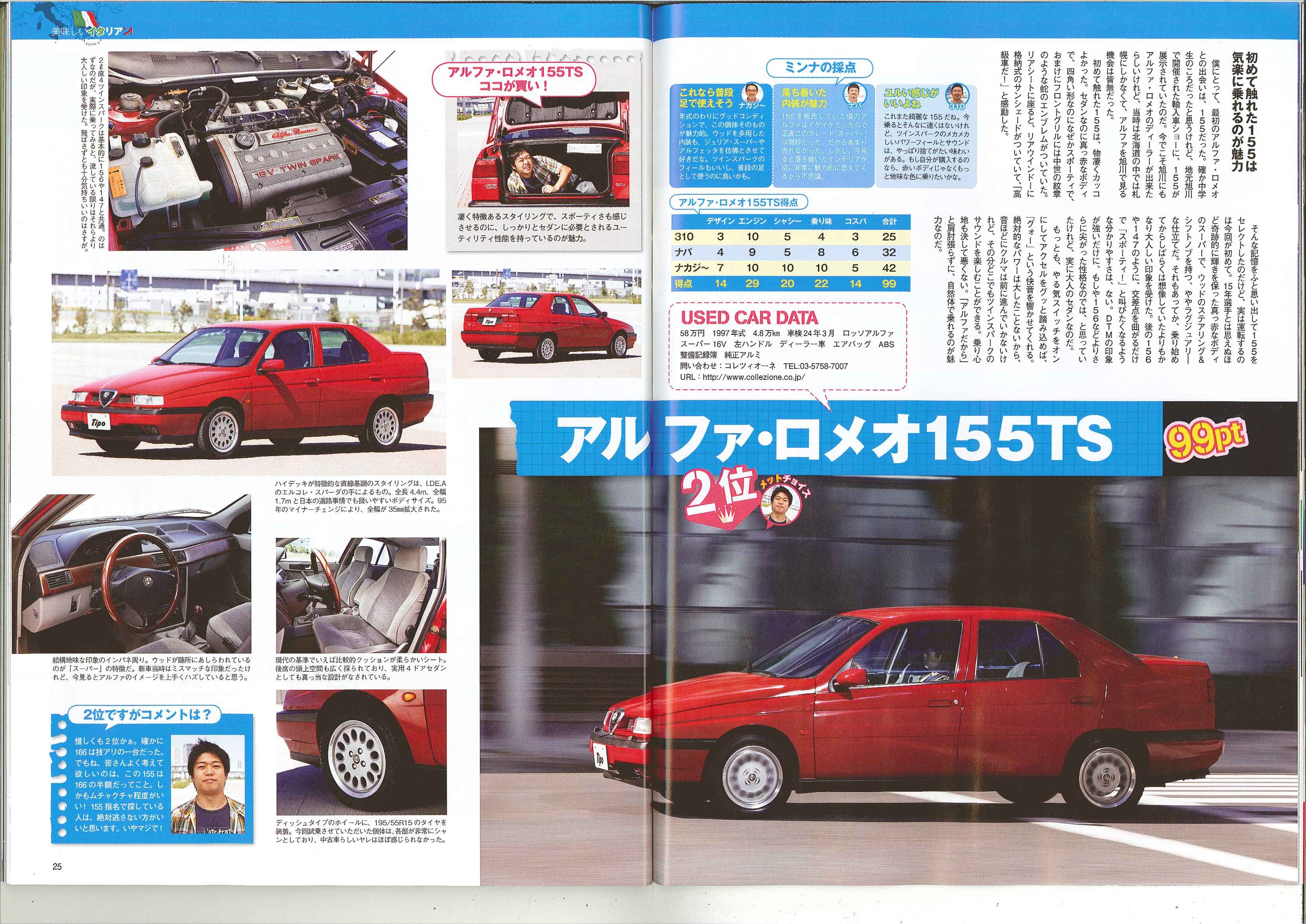 Tipo 2011年11月号 No.269 24p~25p Tipoにて「チューコイタ車選手権」のコーナで弊社商品車・アルファロメオ155TSが第2位に選ばれております!! 惜しくも1位は逃しましたがかなりの高ポイントです!!!