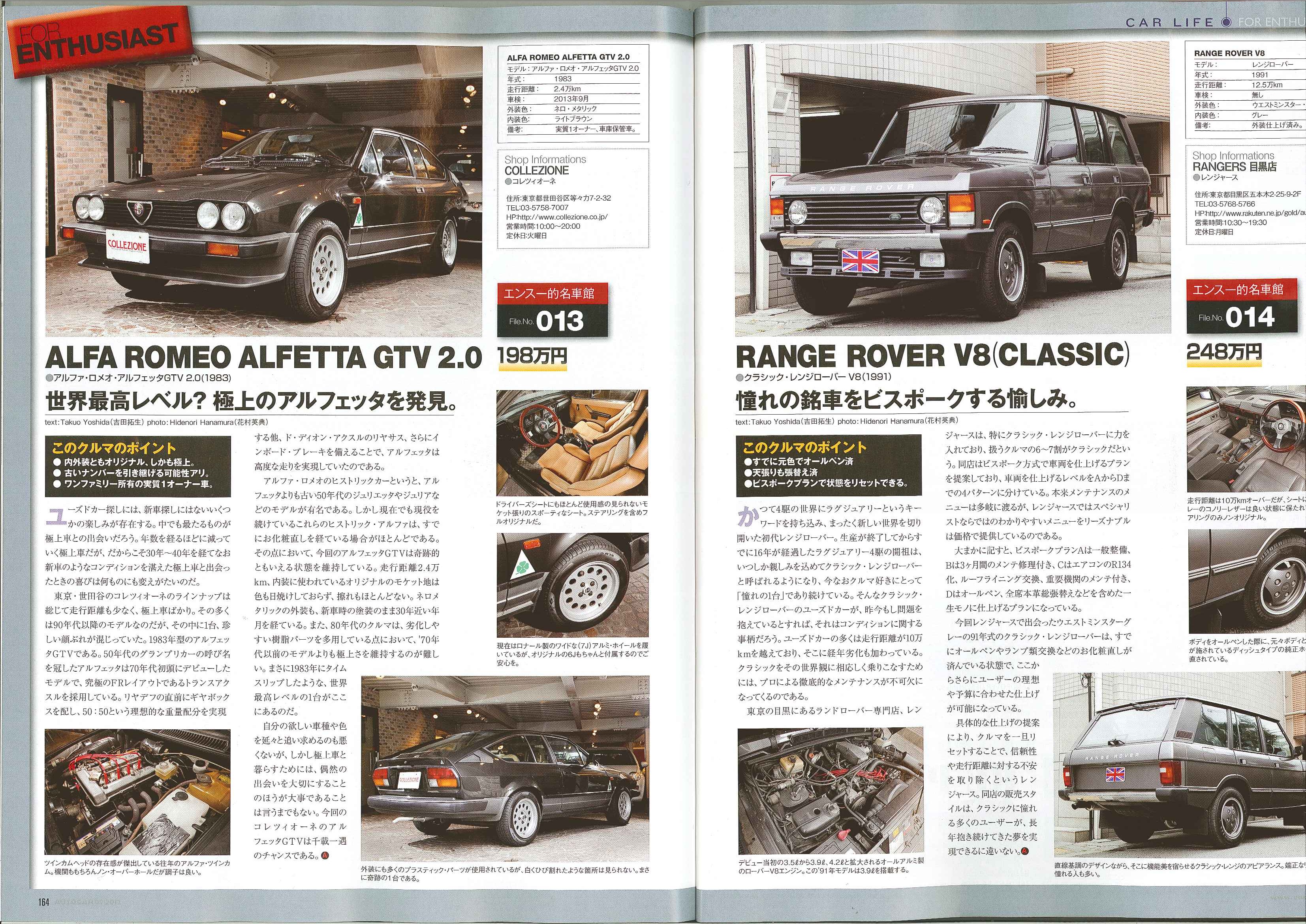 AUTOCAR vol,1129月号 164p 178p AUTOCARにて短期集中連載「ラリーに参加しよう!」がスタートしました!!エンスー的名車館のコーナーにて弊社商品車・アルファロメオ・アルフェッタGTV2.0も出演しております!