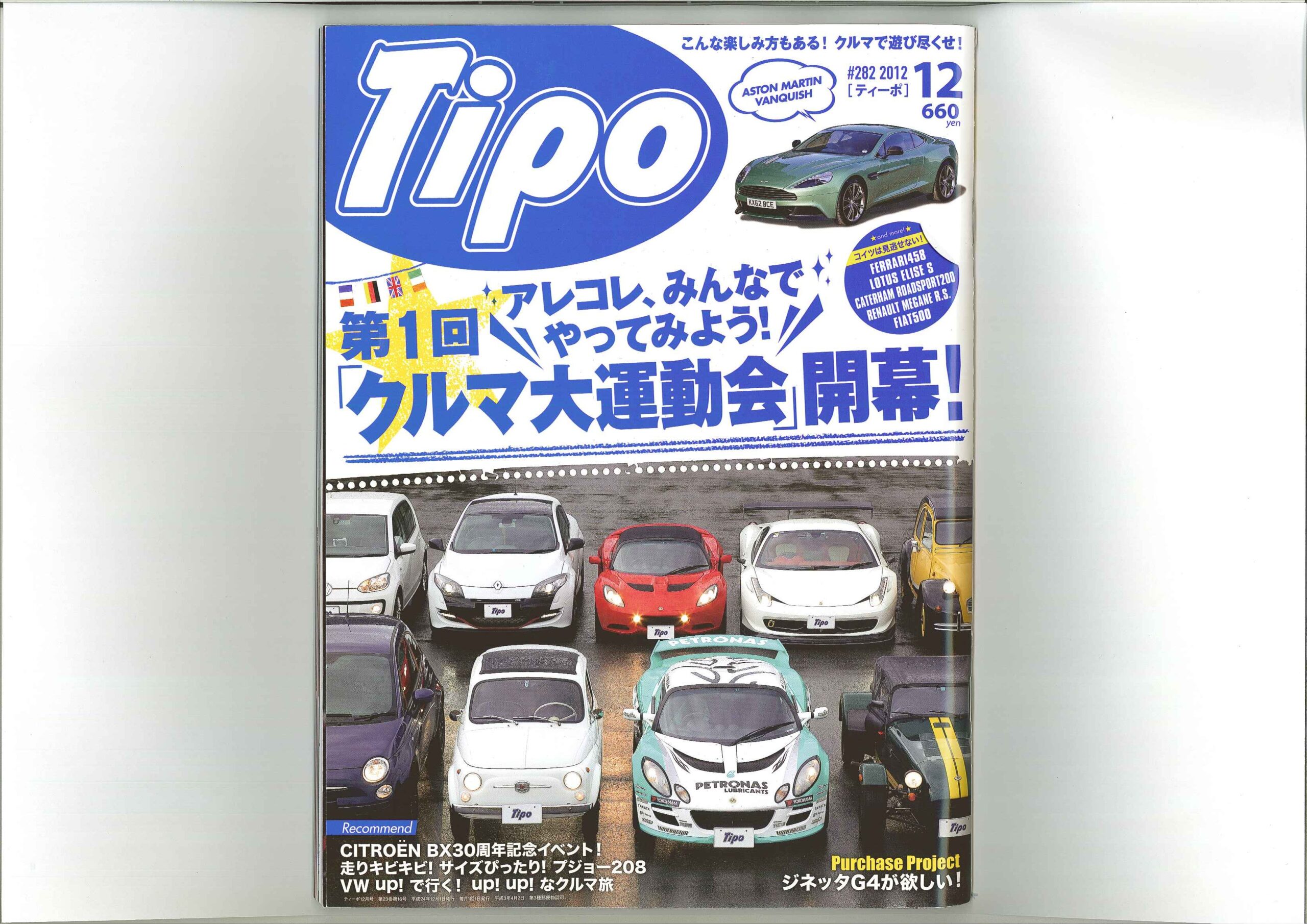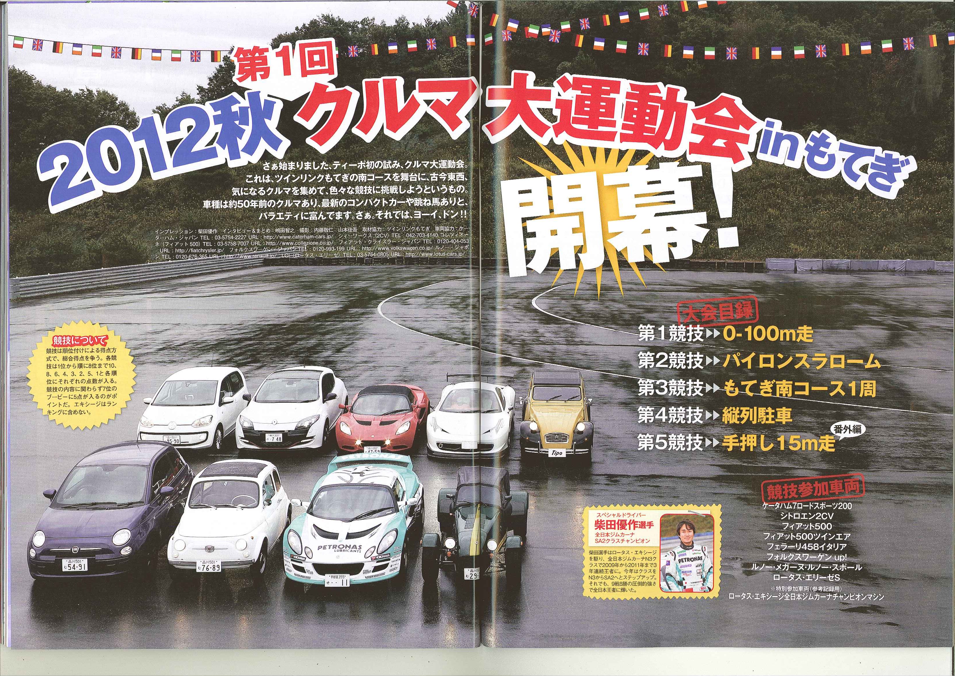 Tipo!! ティーポNo282 12月号 6p~21p 第一回「クルマ大運動会」のコーナーにて弊社商品車・フィアット500が出演しております!! フェラーリ458イタリアなどの参加車両の中、見事4位となりました!