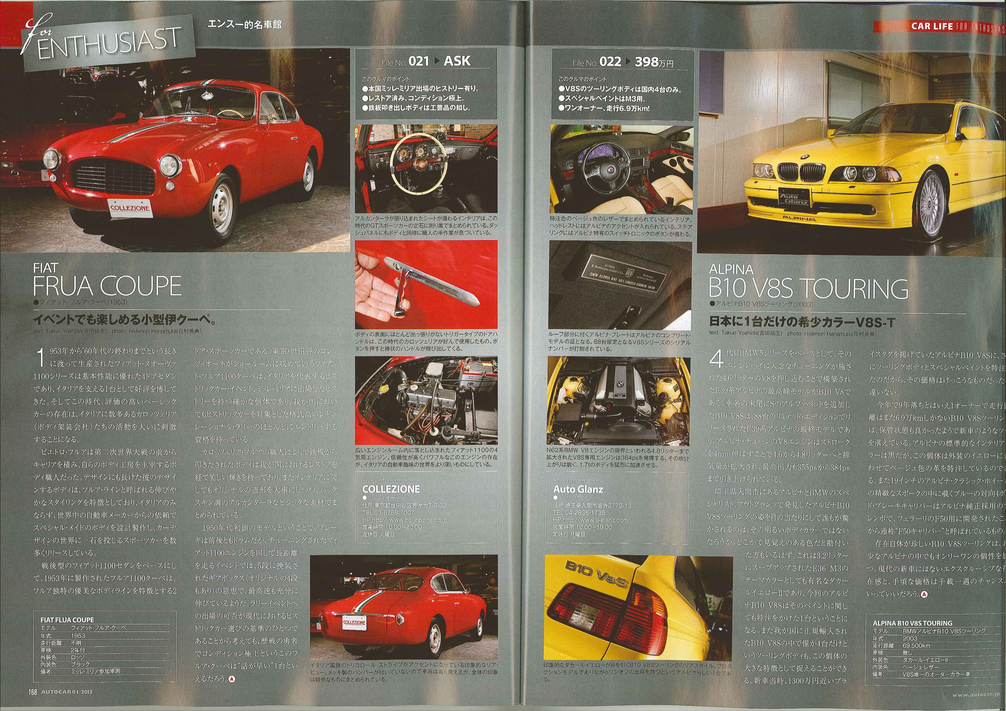 AUTOCAR!! AUTOCAR vol,1162013年1月号 168p AUTOCARにて弊社商品車・フィアット1100フルアクーペが出演しました。 エンスー的名車館のコーナーで紹介されております!!