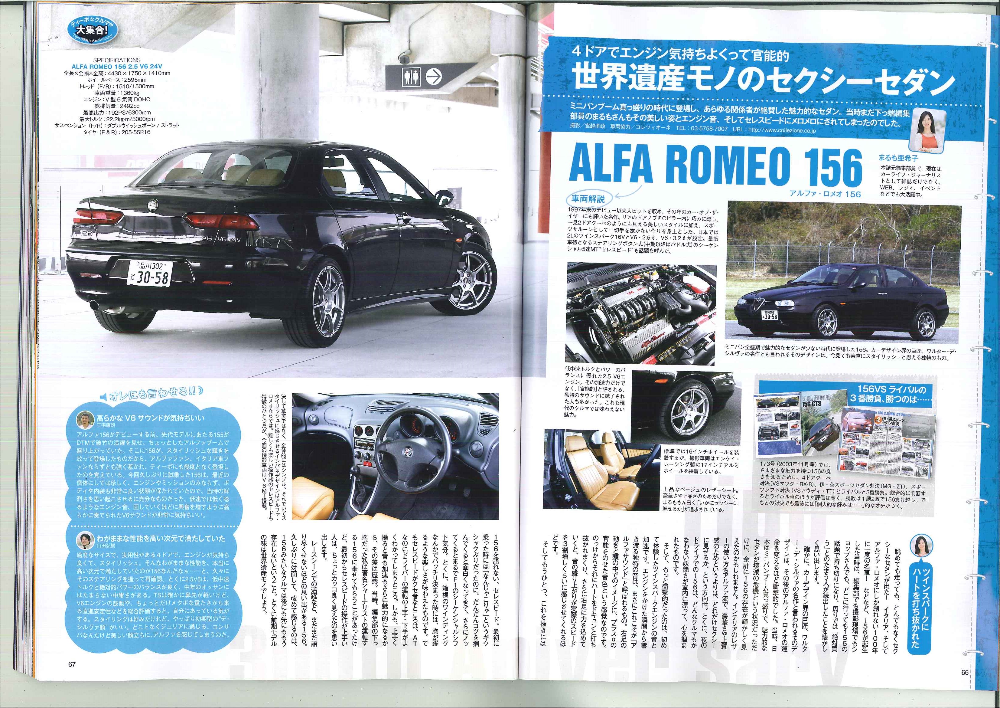 ティーポ創刊300号記念スペシャル No300 2014年 JUNE 66p~67p ティーポなクルマが大集合!のコーナーにて 弊社商品車・アルファロメオ156が出演しております!