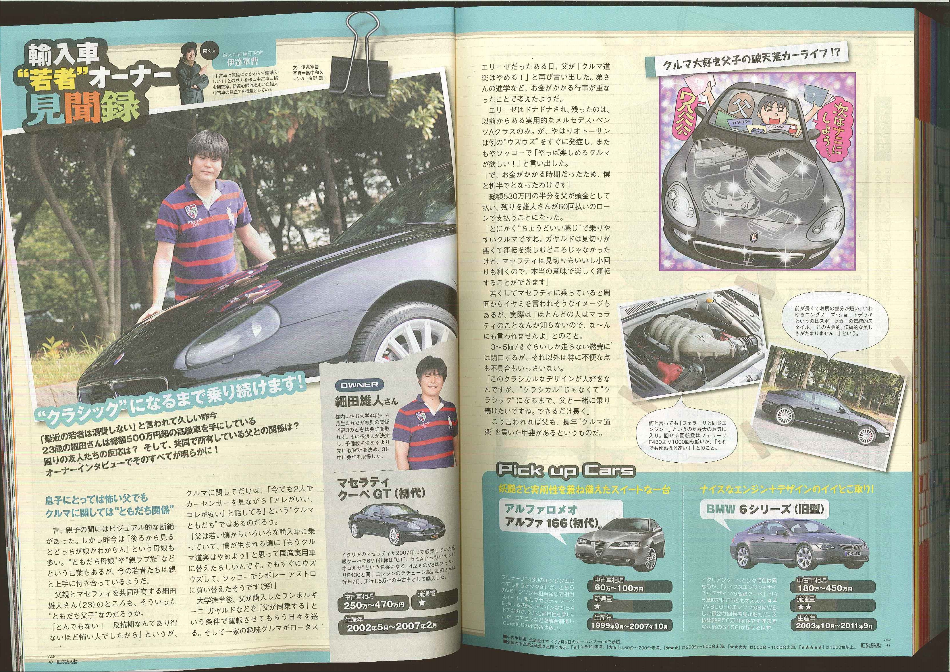 カーセンサー 関東版 2014 VOL.9 40p~41p 輸入車”若者”オーナー見聞録のコーナーにて 弊社のお客様が出演されました!! 愛機はマセラティです!
