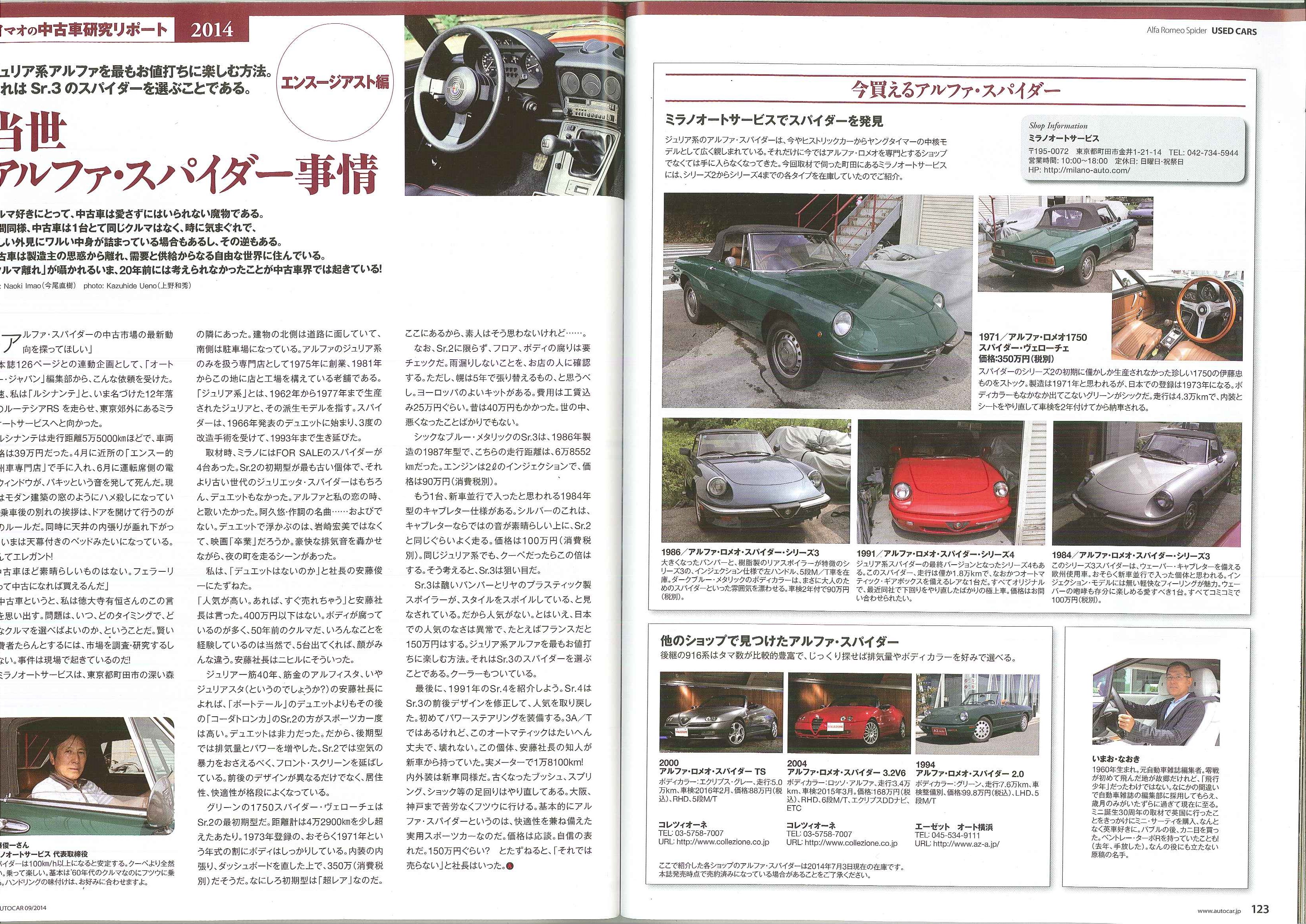 AUTOCARJAPAN SEPTEMBAR2014Vol.136 当世アルファ・スパイダー事情のコーナーにて 弊社商品車・アルファロメオスパイダーTS、スパイダー3.2 V6 をご紹介いただきました!