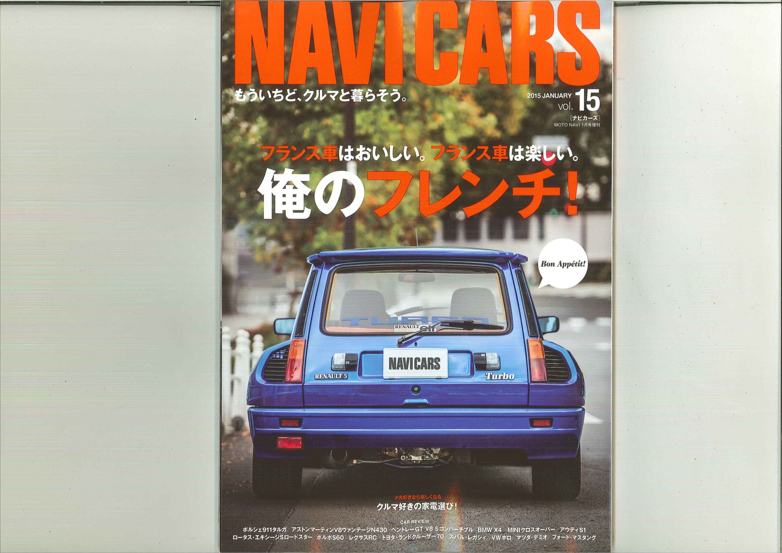 表紙 22p~23p34p~37p 表紙と「俺のフレンチ!」のコーナーで 弊社でご紹介させていただいたルノー5ターボⅠ(ブルー)が 出演しております!! 新旧、辛口フレンチ2台をテイスティングする 「新しい革袋に、新しい酒」のコーナーにて 弊社からご紹介させていただいたルノー5ターボⅠ(レッド)も 出演しております! このNAVICARSはデジタル版も配信されており、iPhoneやPC、Androidなどでも読めて楽しめます!!