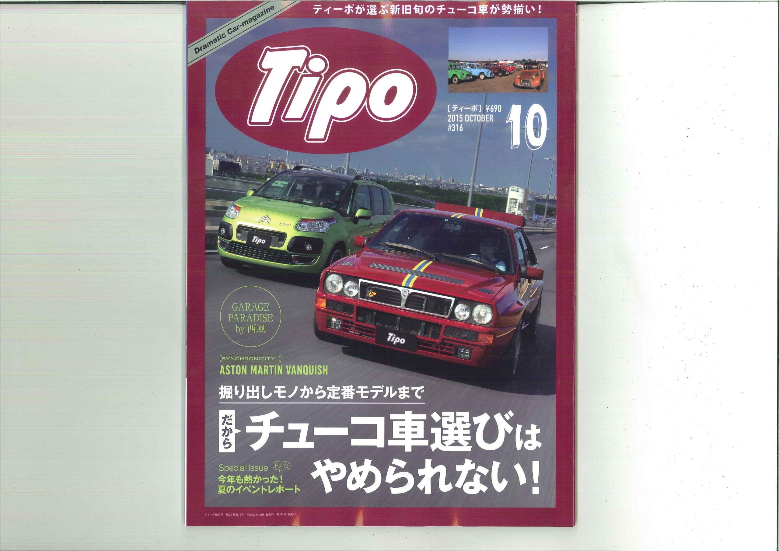 Tipo!! ティーポNo316 2015年 10月号 表紙 12p~17p 巻頭の「ランチアデルタを捕獲せよ!」コーナーにて 取材を受けました!! 弊社商品車・ランチアデルタコレッツィオーネが なんと表紙を飾り特集されております!