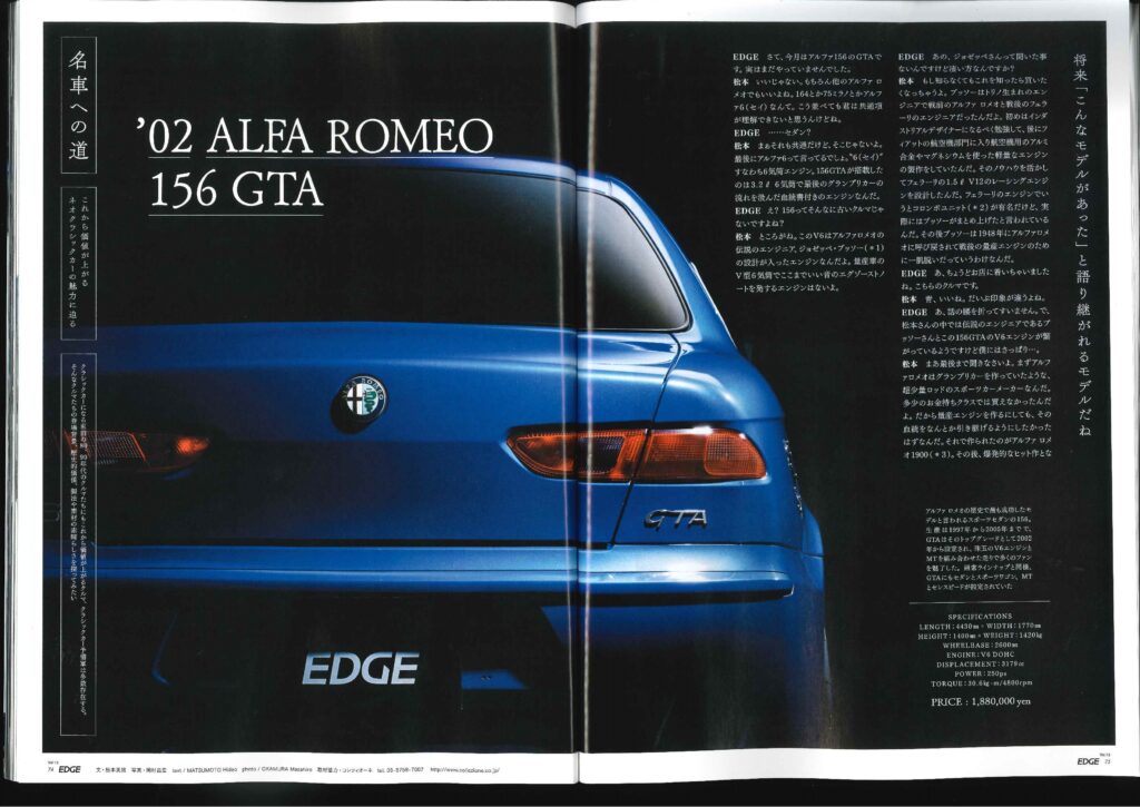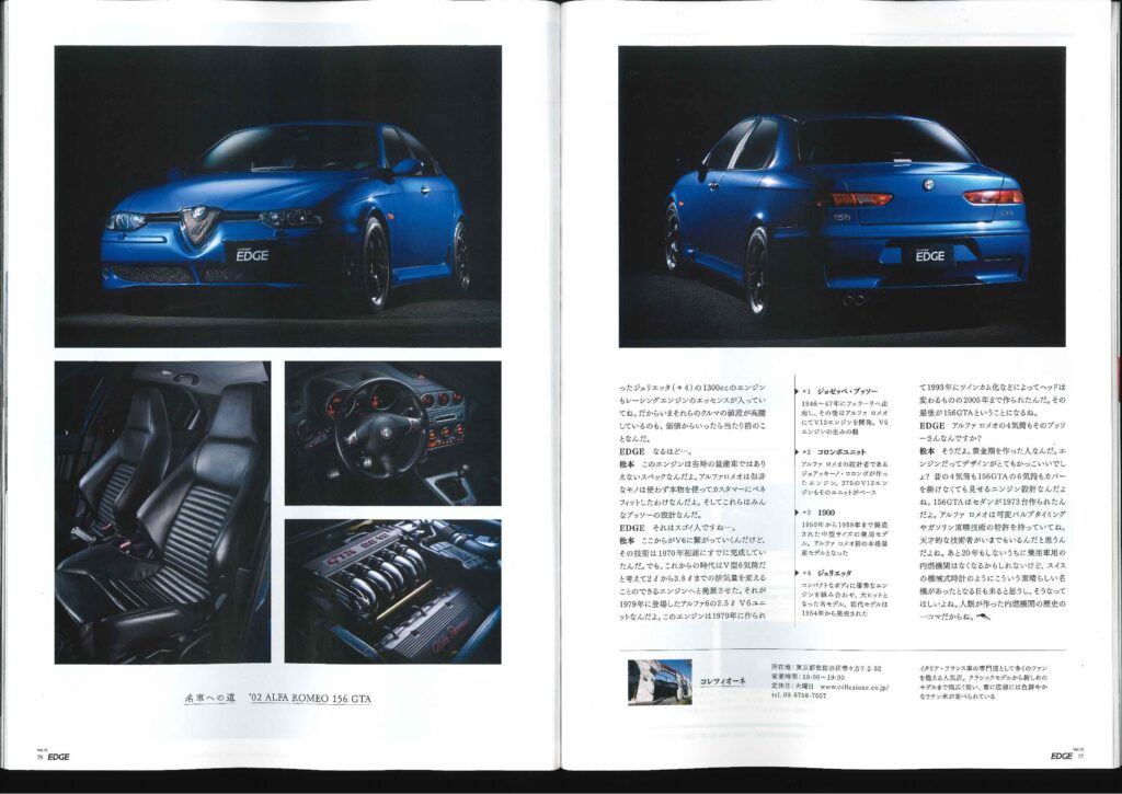 74p~77p 「名車への道」のコーナーにて 弊社商品車・アルファロメオ156GTAが 出演しております!!
