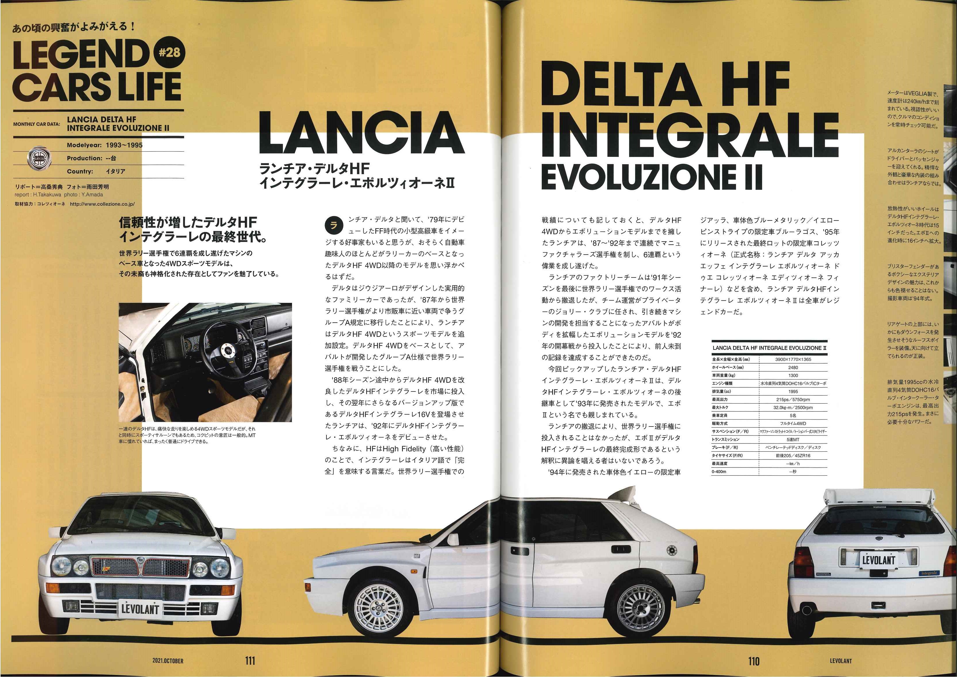 ル・ボラン 2021 OCT. VOL45 NUMBER.535 110P~111P あの頃の興奮がよみがえる! LEGEND CARS LIFE #28のコーナー にて弊社商品車・ランチアデルタインテグラーレが 出演しております!